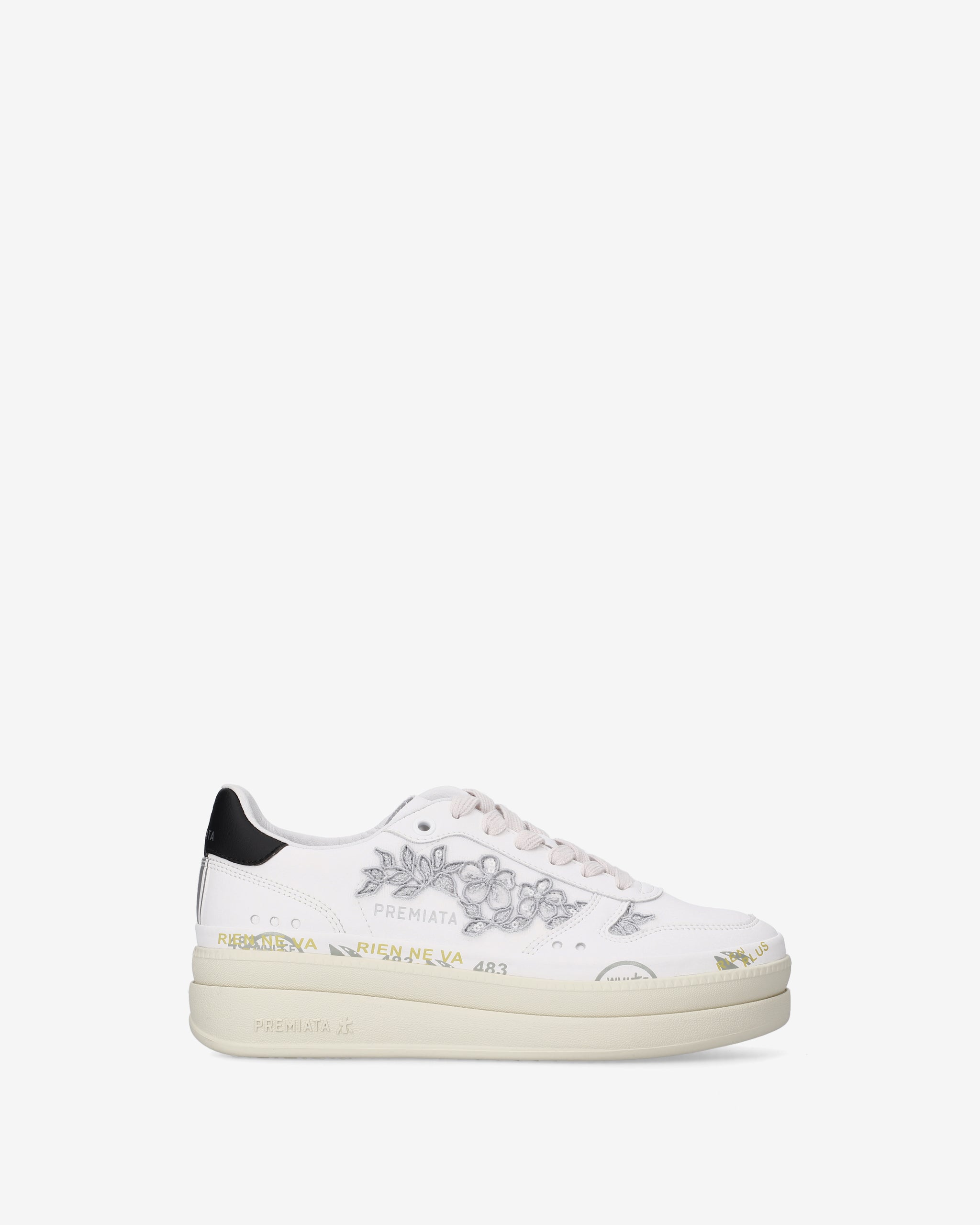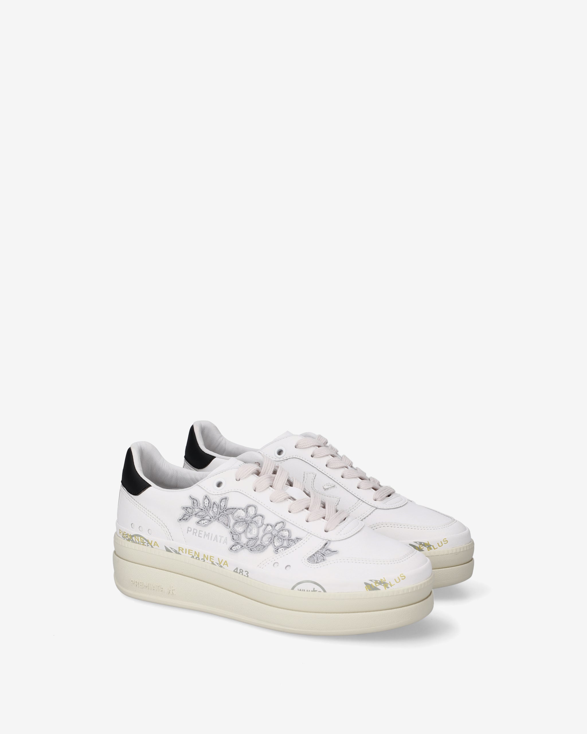 Tra i nuovi must have di Premiata. Lo stile raggiunge nuove vette, unendo design come la suola platform doppio strato con un’intersuola impreziosita dagli iconici timbri del brand.