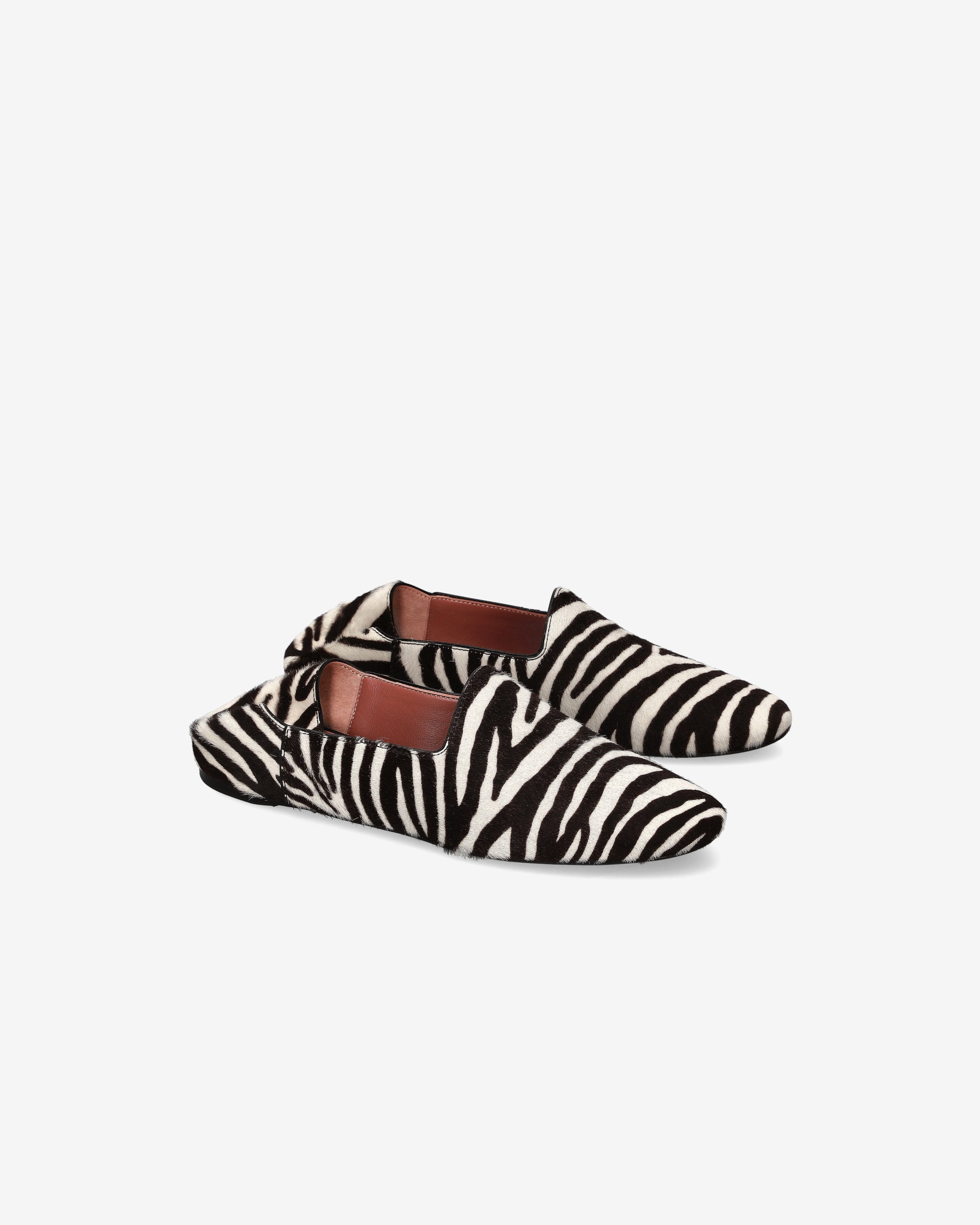 Elegante marocchina in cavallino con stampa zebra, caratterizzata dalla forma tonda e dal tallone che può essere abbassato per trasformarla in un sabot. Questo modello unisce il fascino dell'animalier con la versatilità di uno stile pratico e sofisticato, perfetto per chi cerca un tocco di originalità e comfort.