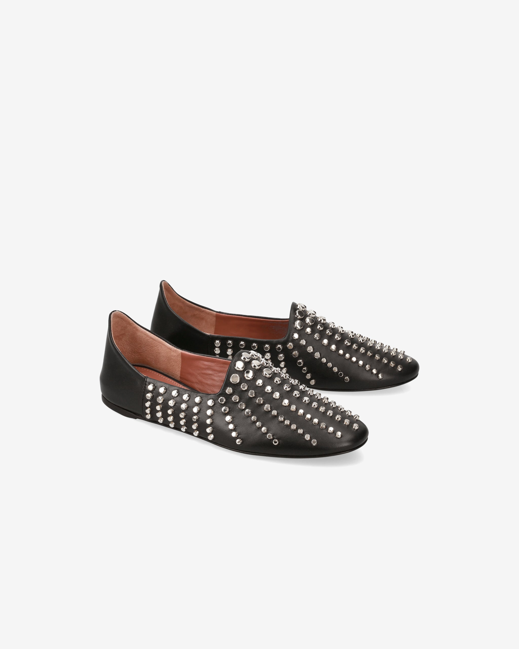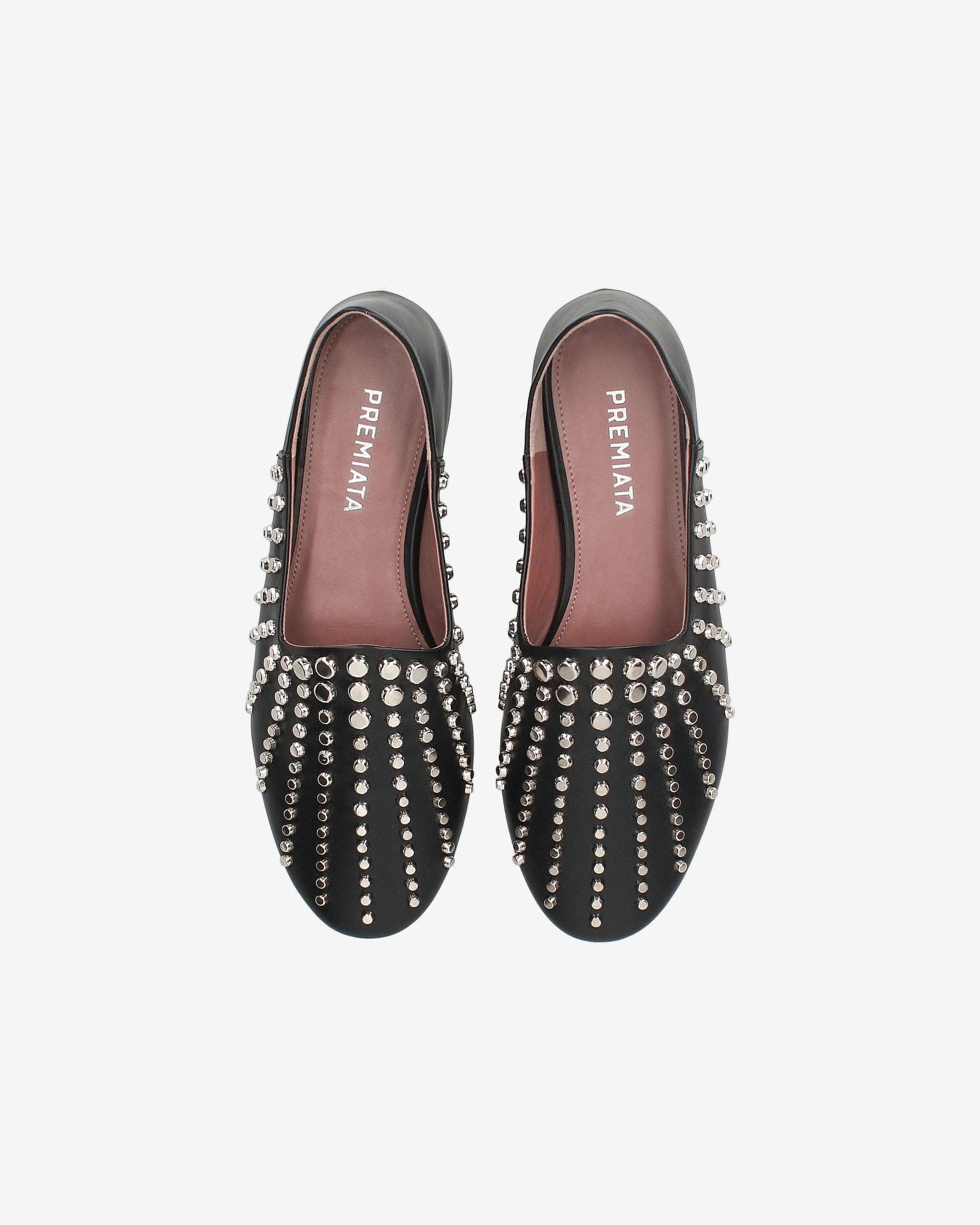Marocchina dallo stile deciso e audace, realizzata in vitello nero e arricchita con borchie nichel che conferiscono un look rock e contemporaneo.