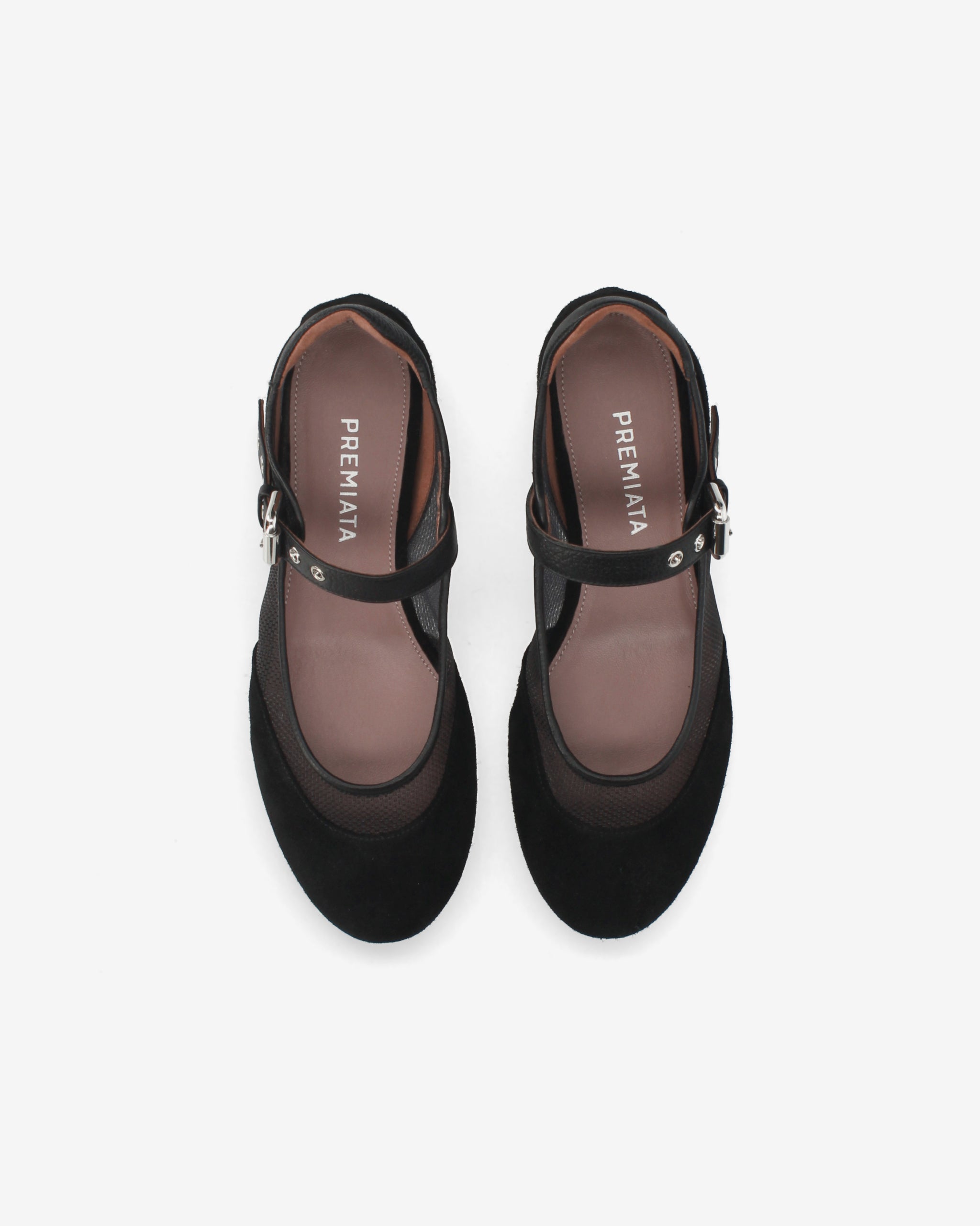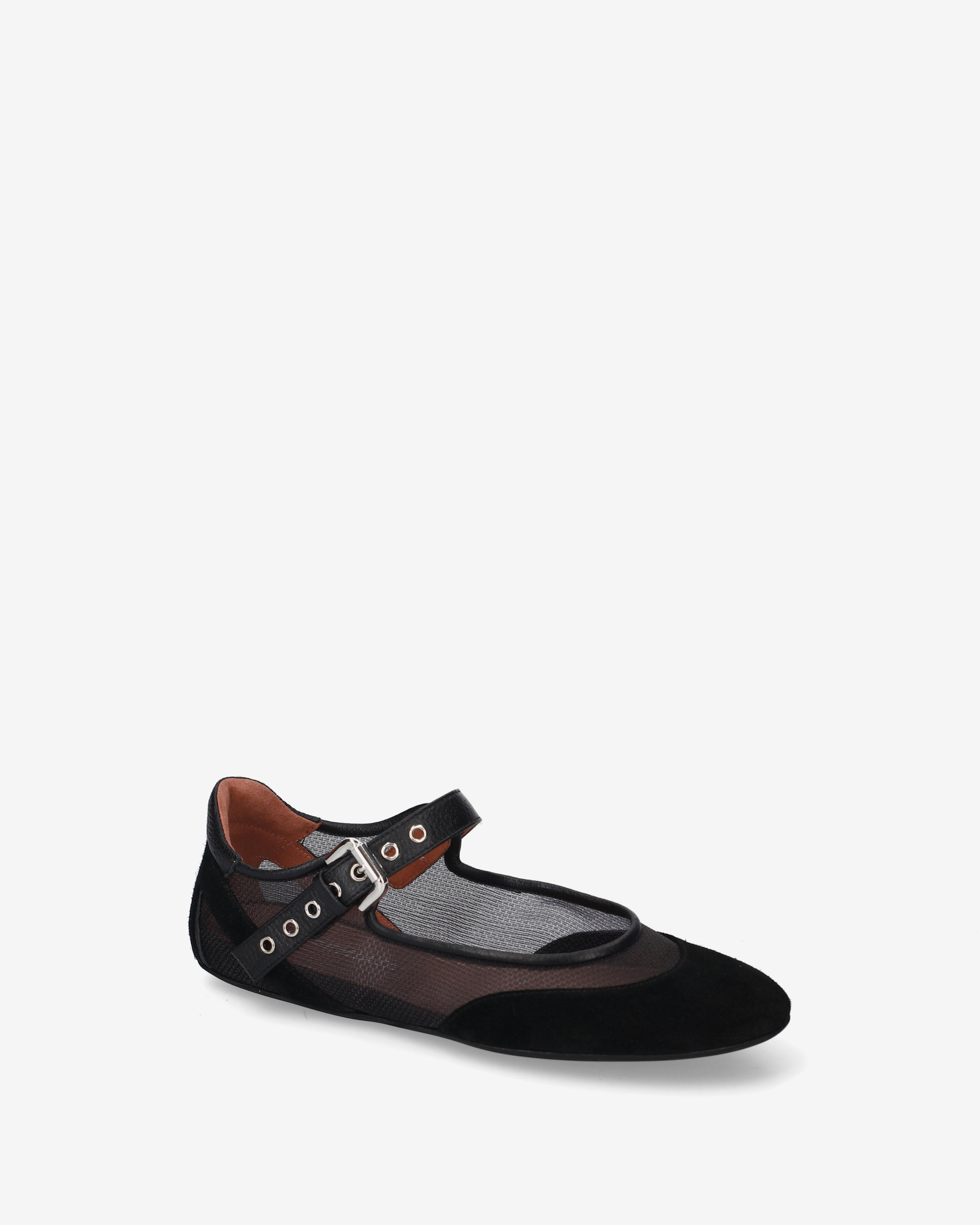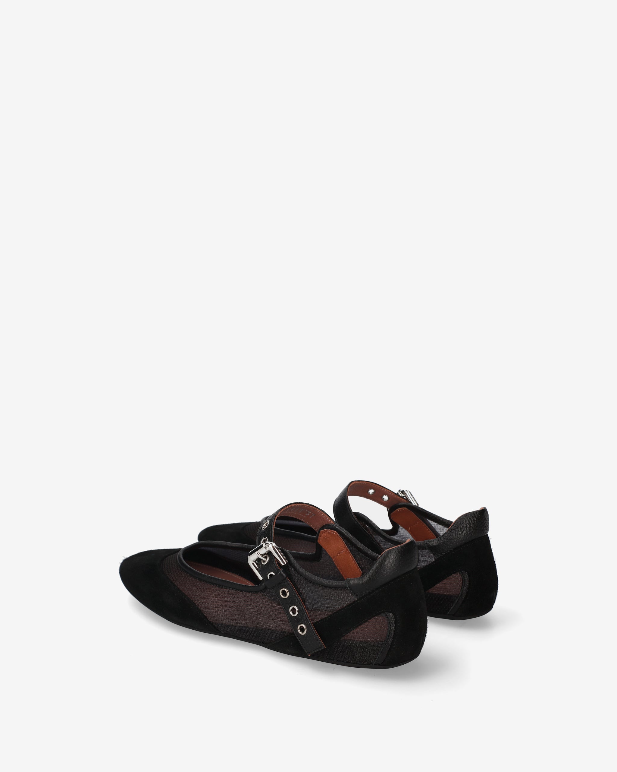 - Modello Mary Jane con punta e tallone rinforzati in suede nero