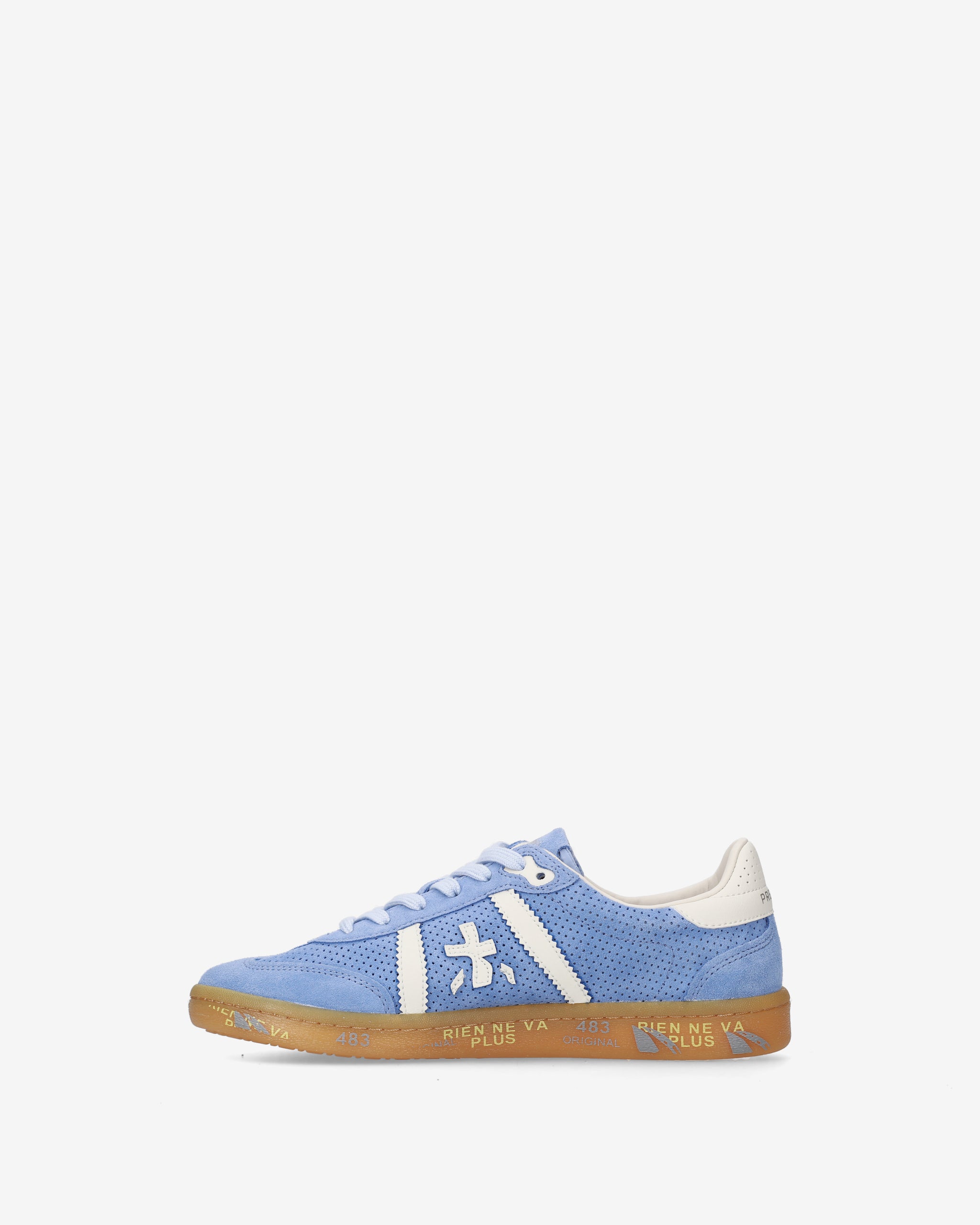 Bonnie con tomaia in traforato azzurro, dettagli bianchi a contrasto e suola gum. Un mix di colori eccentrici per un’estetica nuova e sofisticata.
