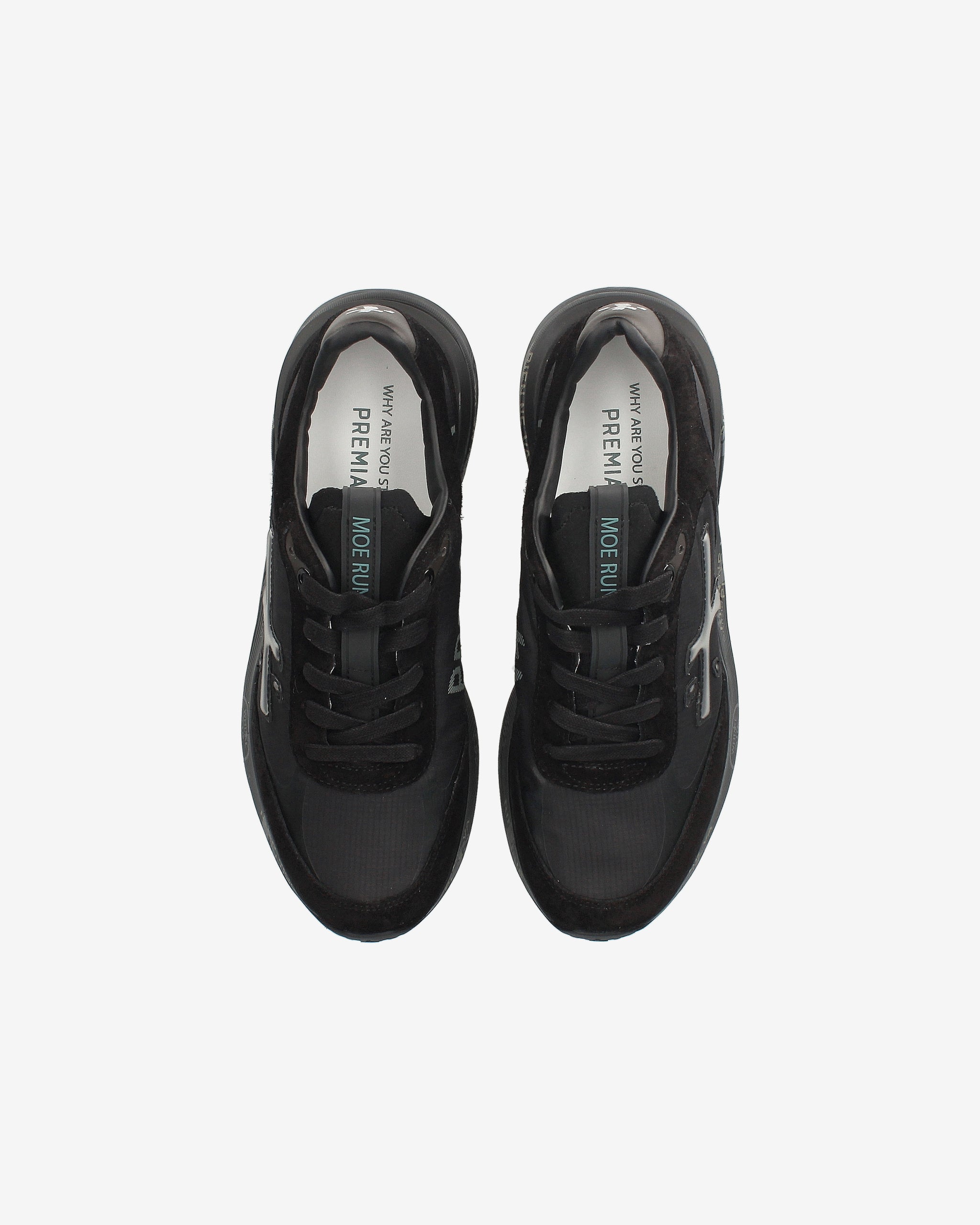 Ideate per stupire. La Moerun si basa sulla leggerezza del movimento, la stabilità e la sensazione ammortizzante data dall'innovazione del fondo. La nuova silhouette è ricca di dettagli: logo sul laterale esterno, scritta PREMIATA sul laterale interno e nome del modello sull'etichetta.