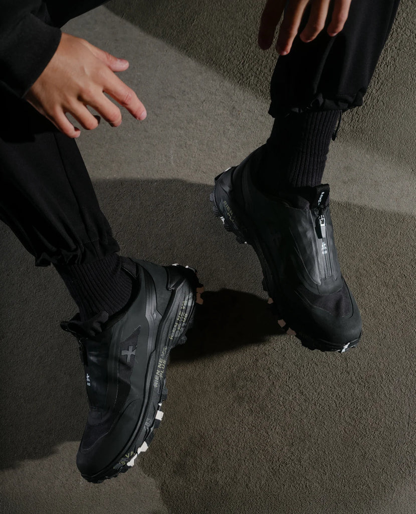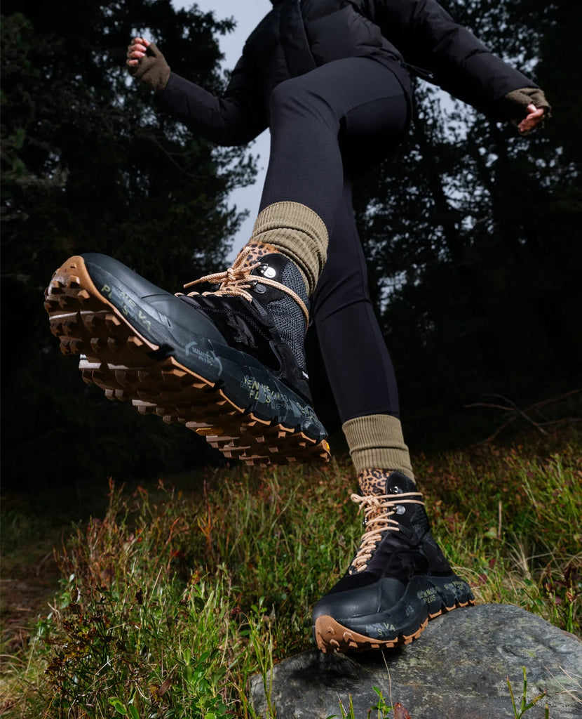 Protagoniste indiscusse della collezione sono le sneakers, da sempre il fiore all’occhiello dell’azienda. Premiata amplia ulteriormente i propri orizzonti e segna un nuovo traguardo con la sua ultima creazione: la Hiking sneaker, caratterizzata da una suola Vibram e da materiali all’avanguardia come il Cordura e il camoscio délavé. Resistenza, grip e comfort sono le qualità distintive delle calzature trekking di Premiata: una sneaker versatile che si adatta con facilità ai contesti più diversi — dalla vita quotidiana, dove permette di muoversi con comodità e restare all’asciutto, ai viaggi spensierati verso le capitali del Nord Europa, fino alle fughe più avventurose tra paesaggi invernali innevati — con la certezza di indossare una sneaker che è sempre al tuo passo.