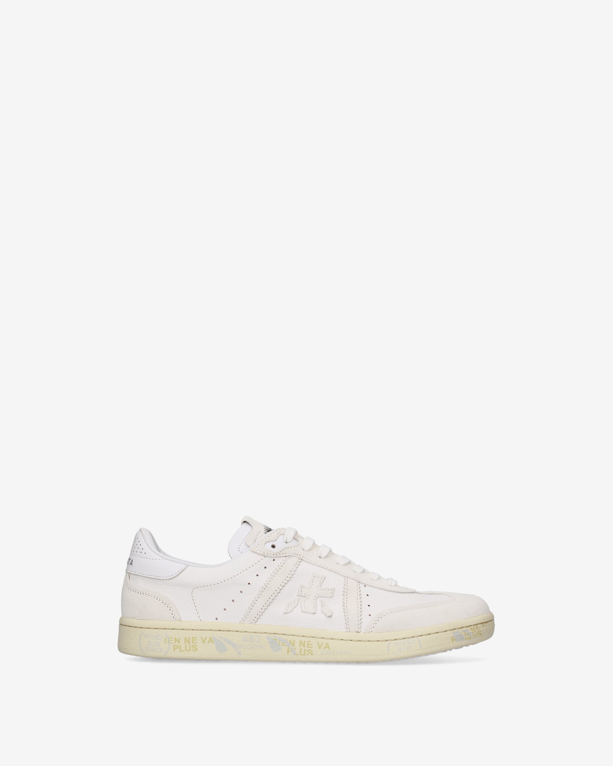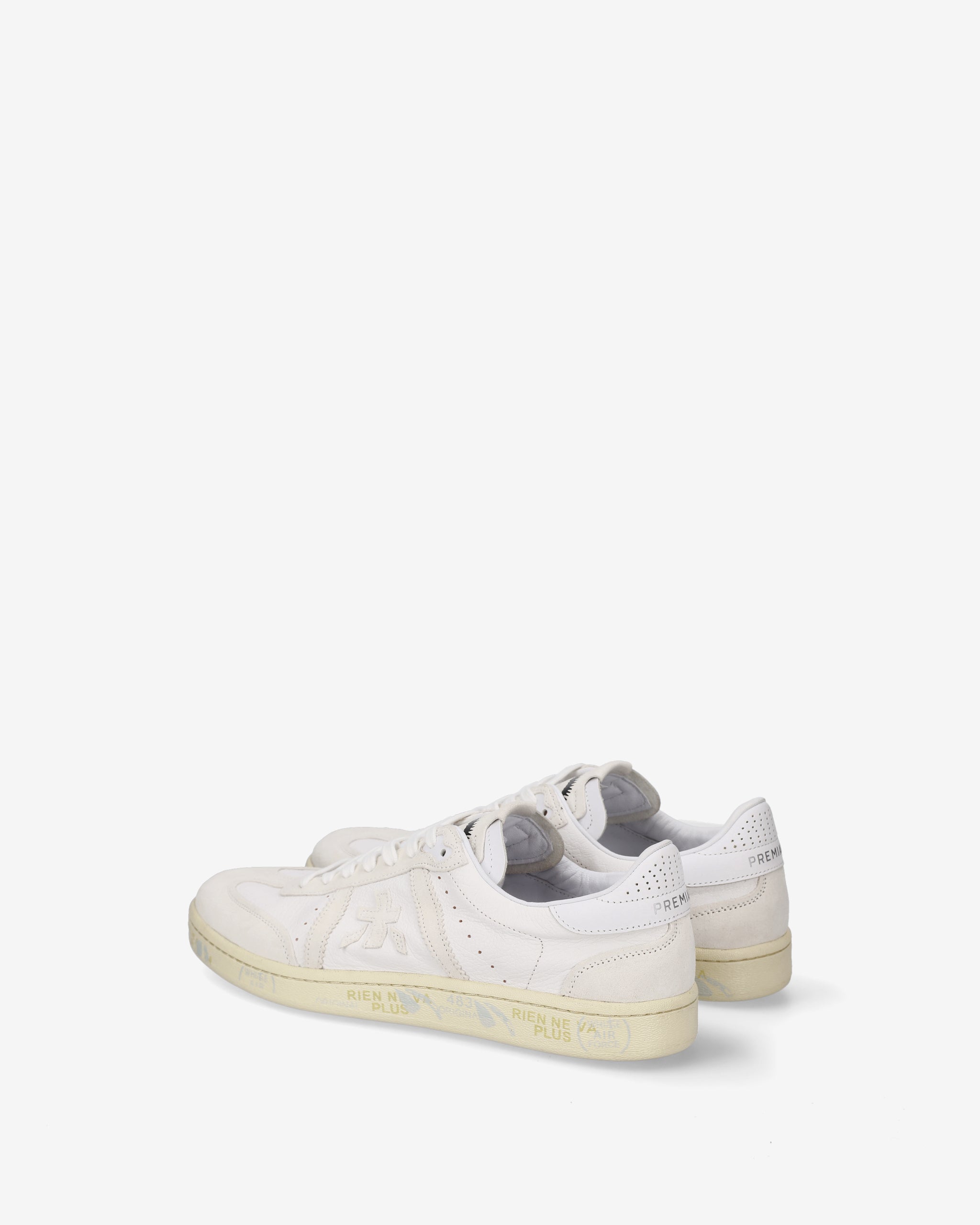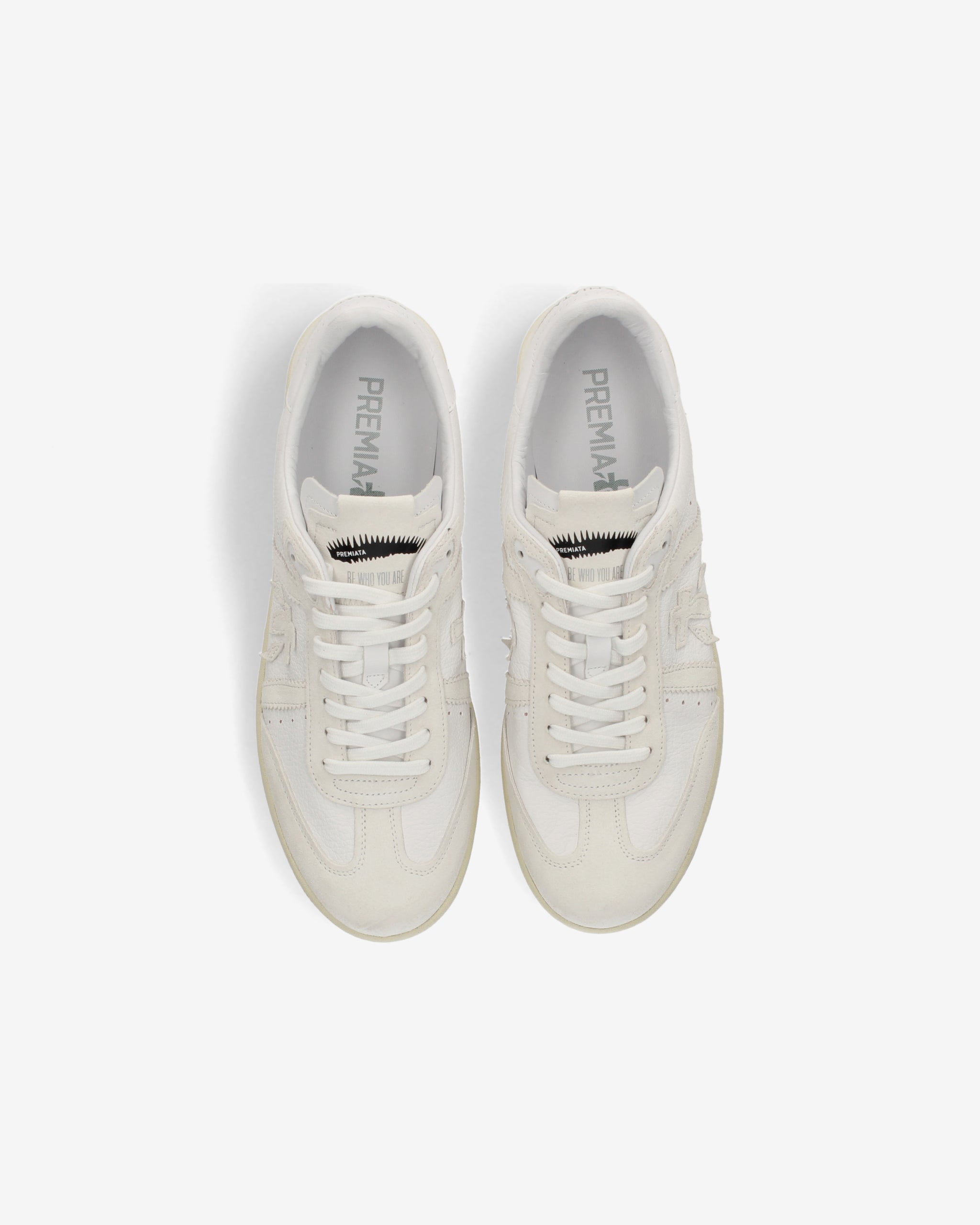 Bonnie bianca e suola off white con fodera blu a contrasto. Una sneaker bianca per un’estetica pulita e sofisticata.