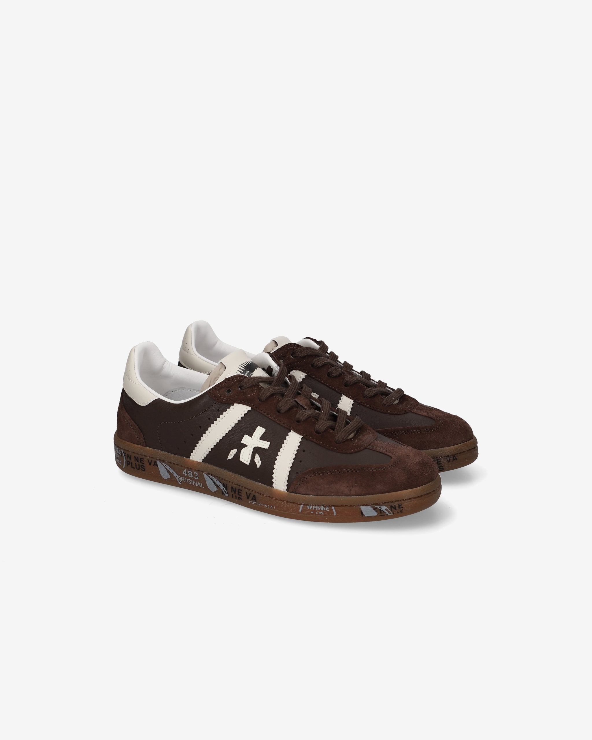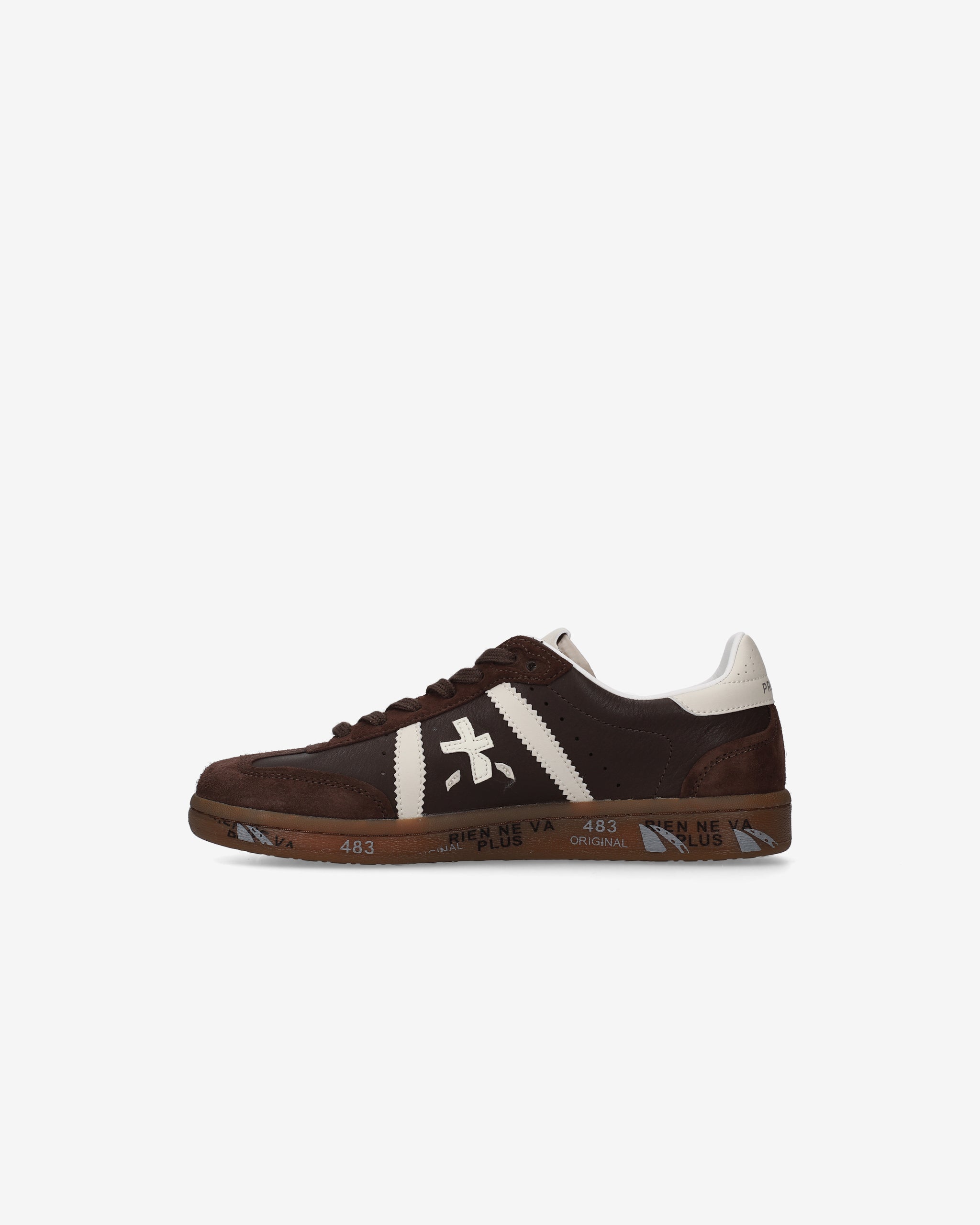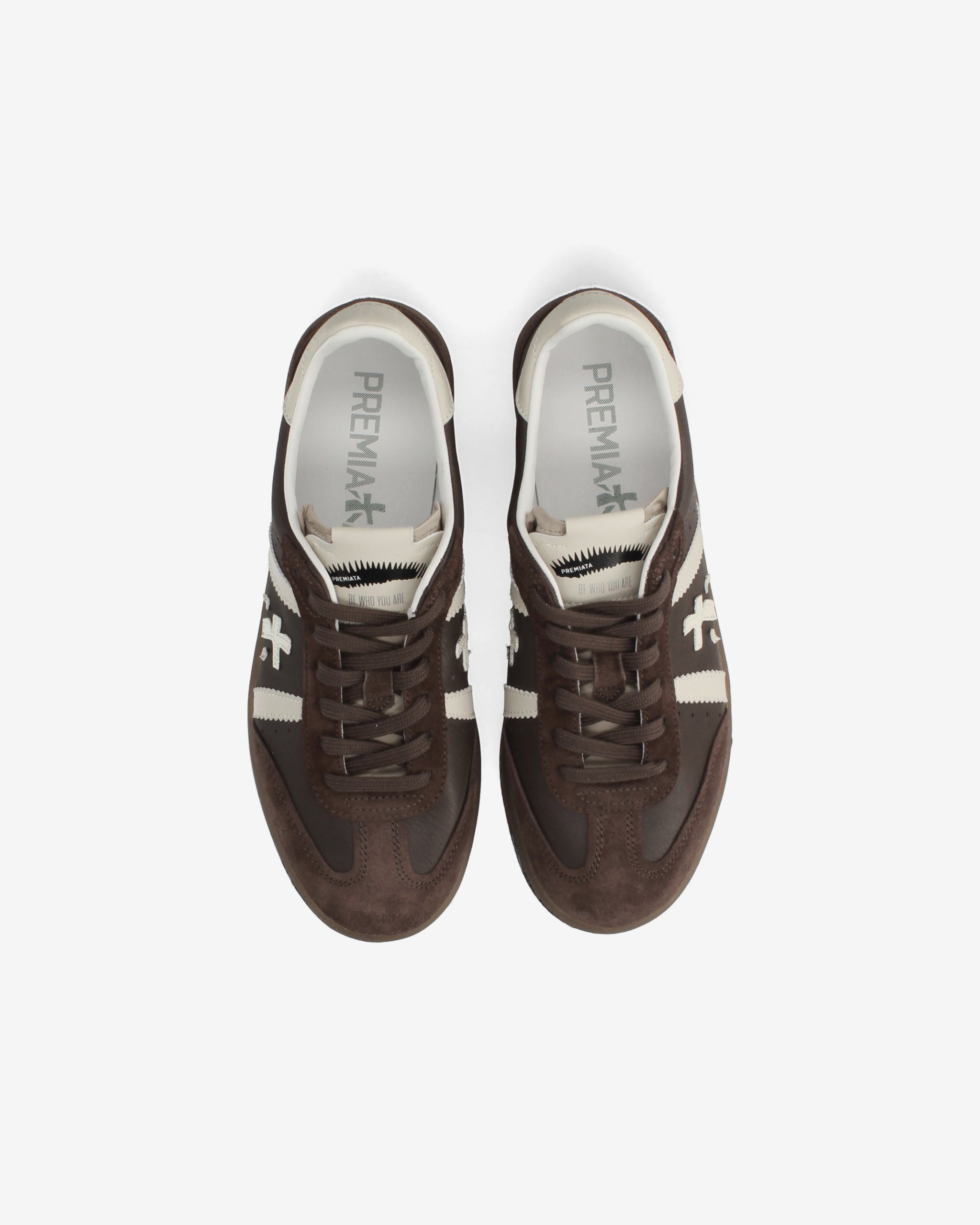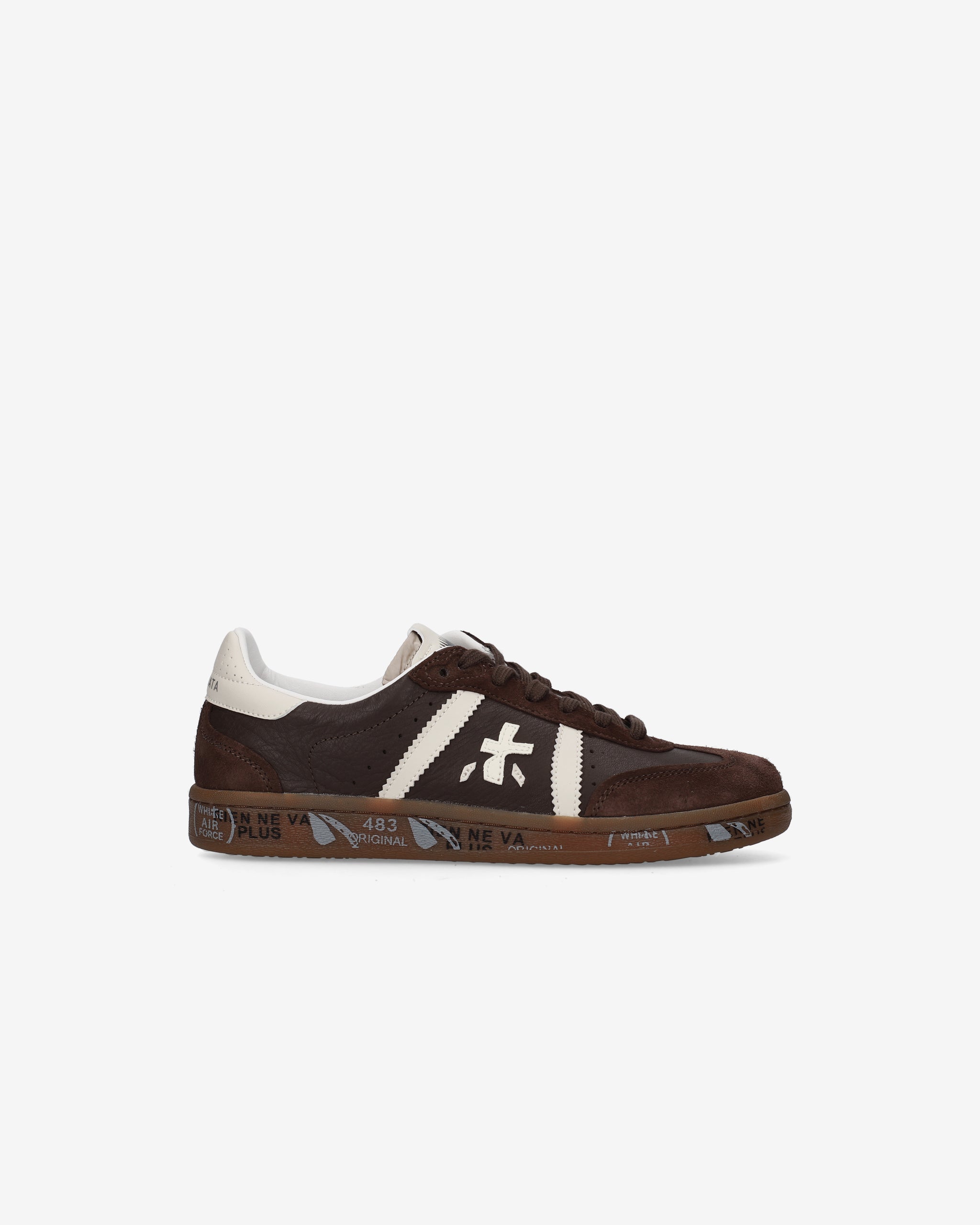 Bonnie con dettagli marroni, arricchita da timbri iconici sulla suola che ne sottolineano l’identità unica. Stile dinamico e riconoscibile.