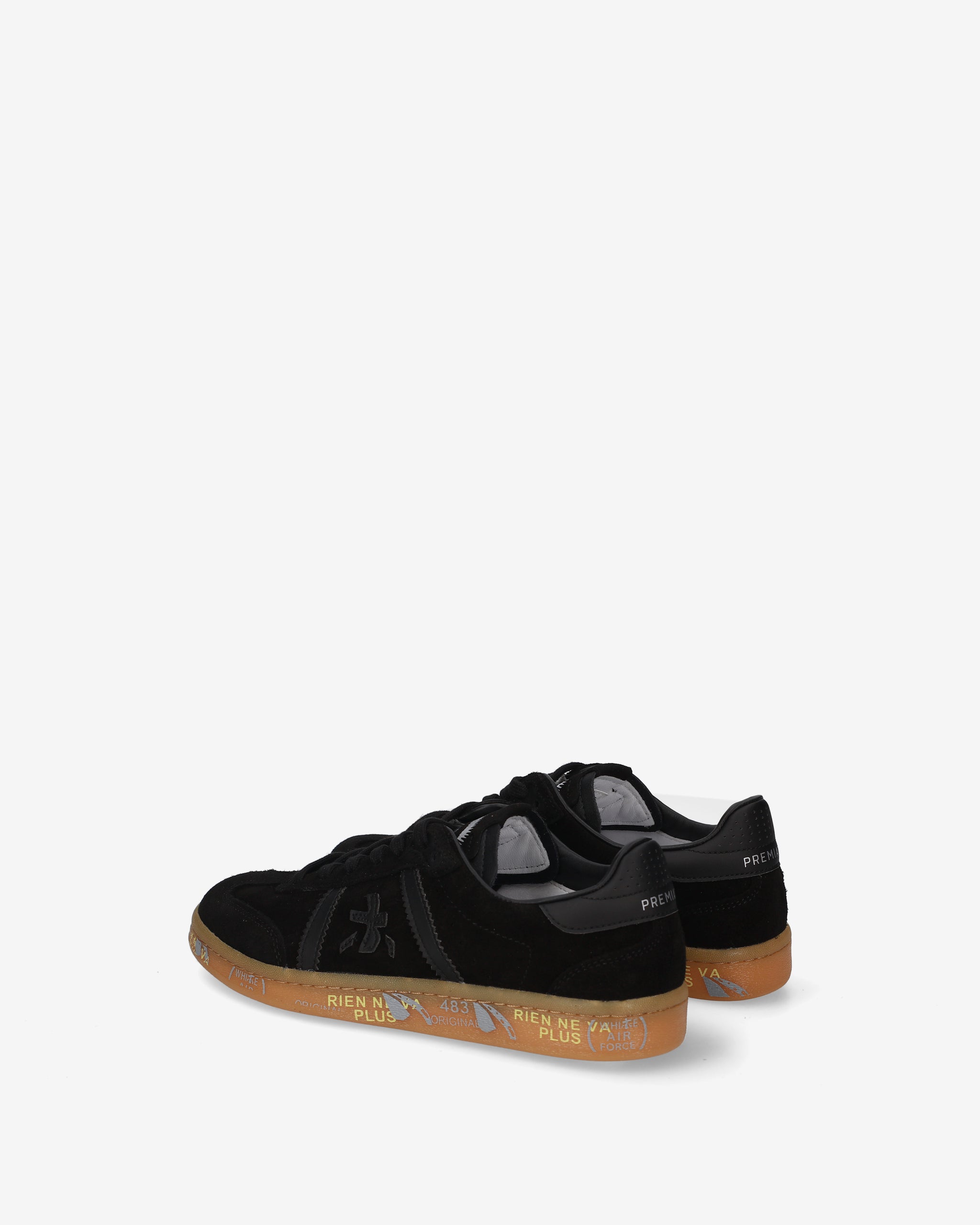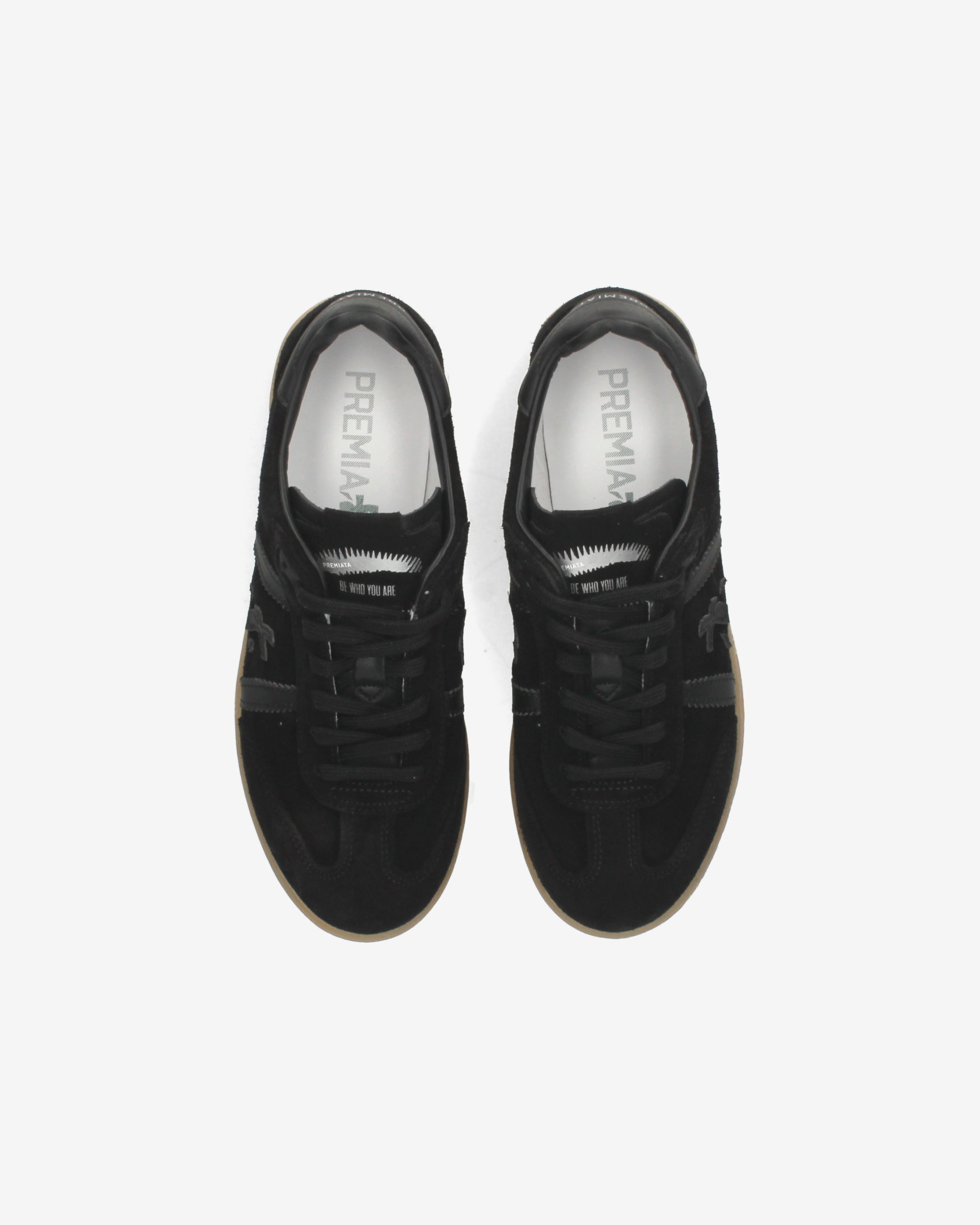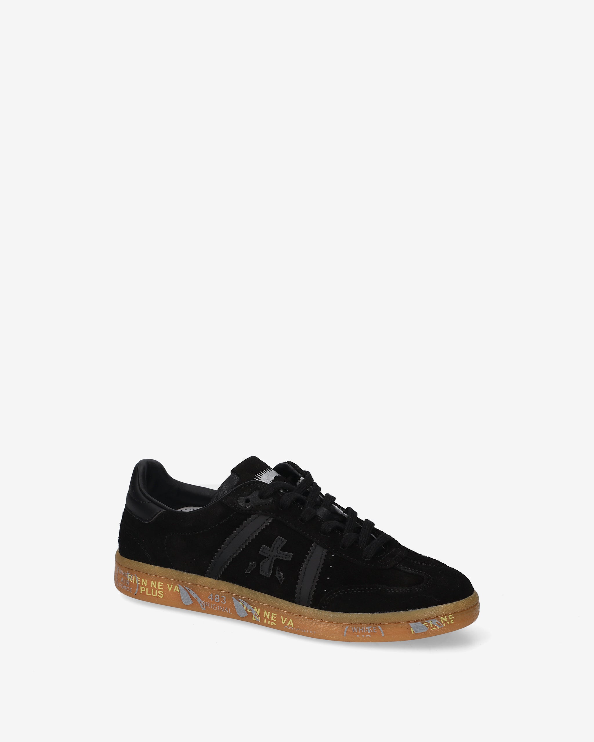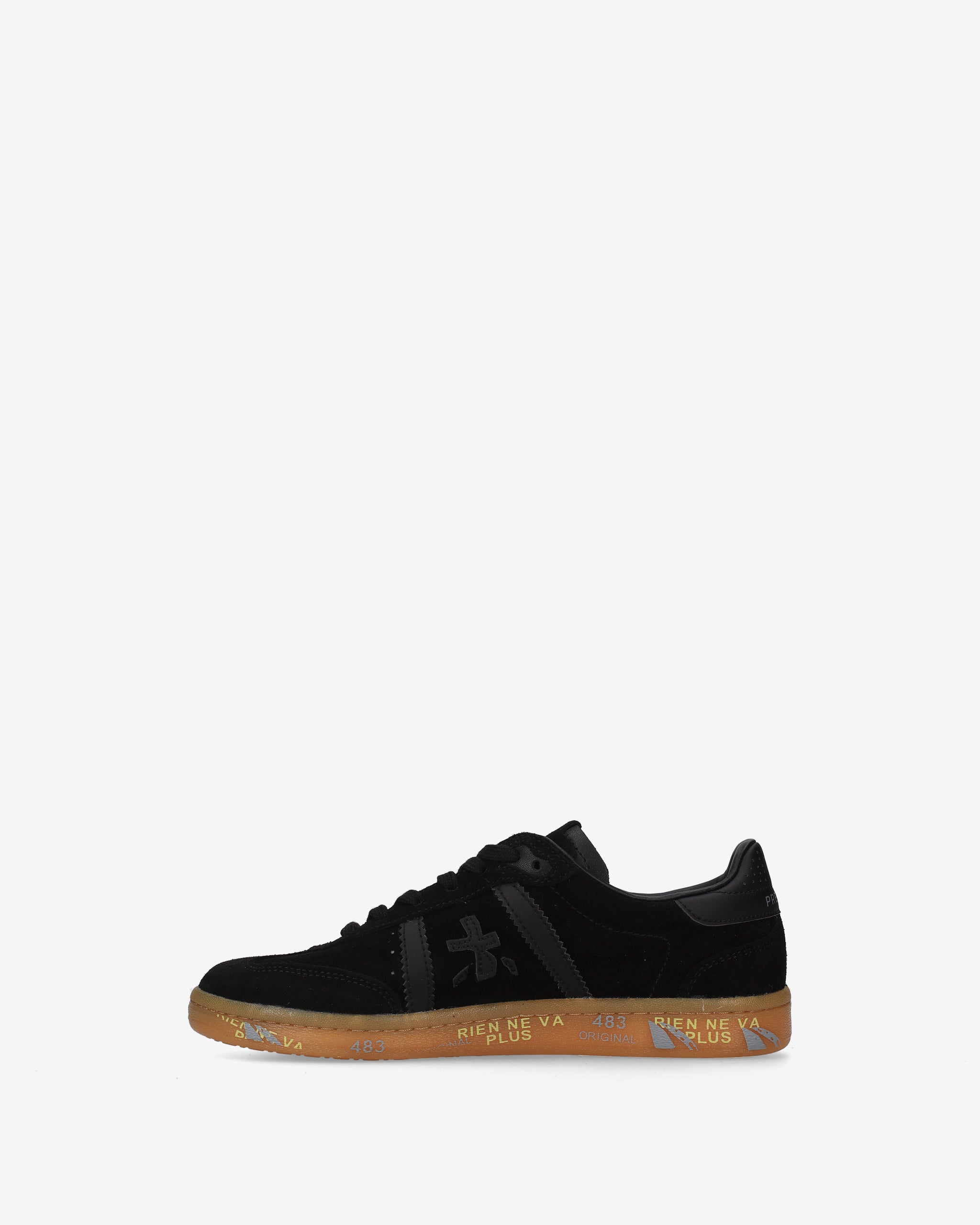 Bonnie con tomaia in suede nero, dettagli neri ton sur ton e suola gum. Un mix di colori classici per un’estetica pulita e sofisticata.