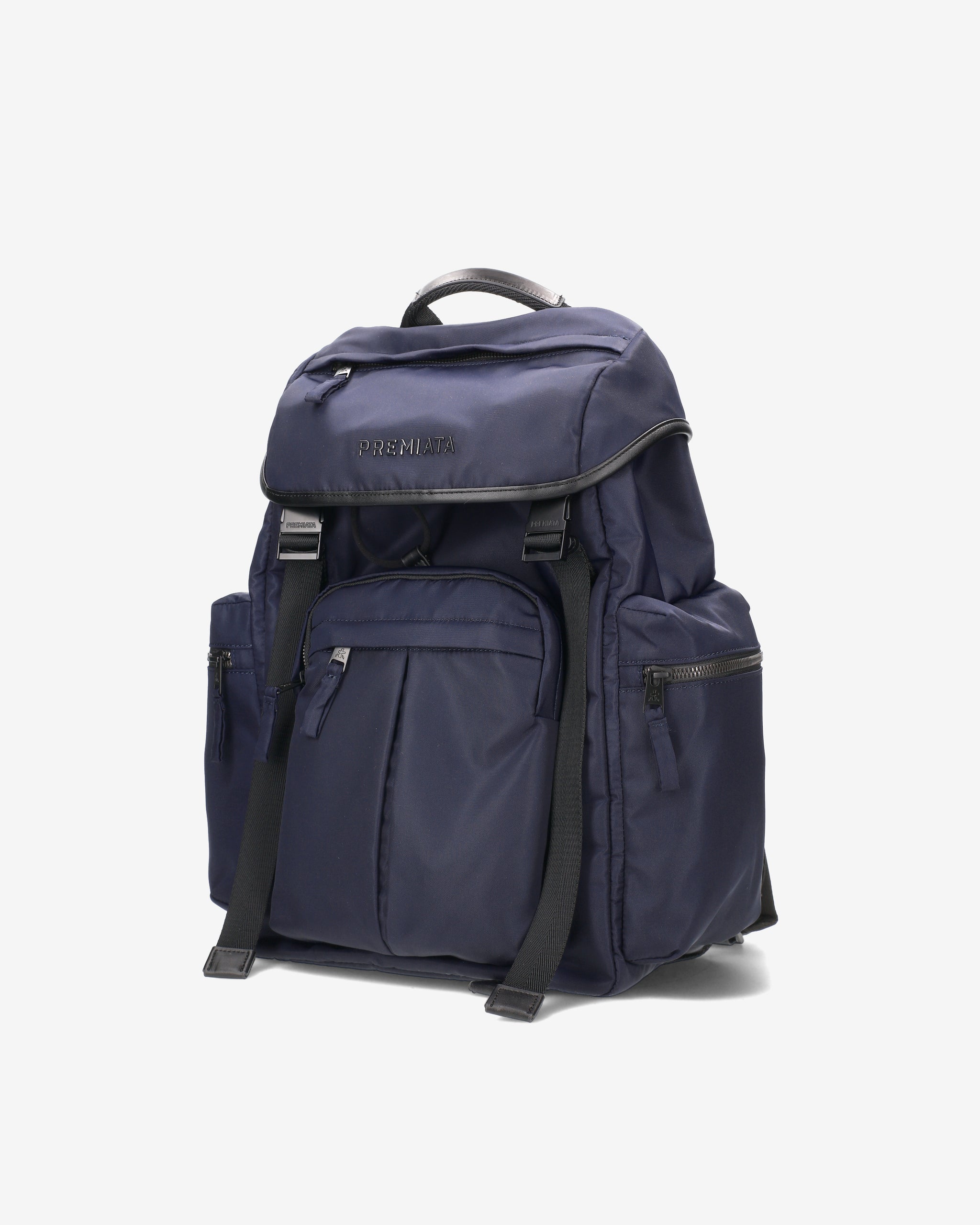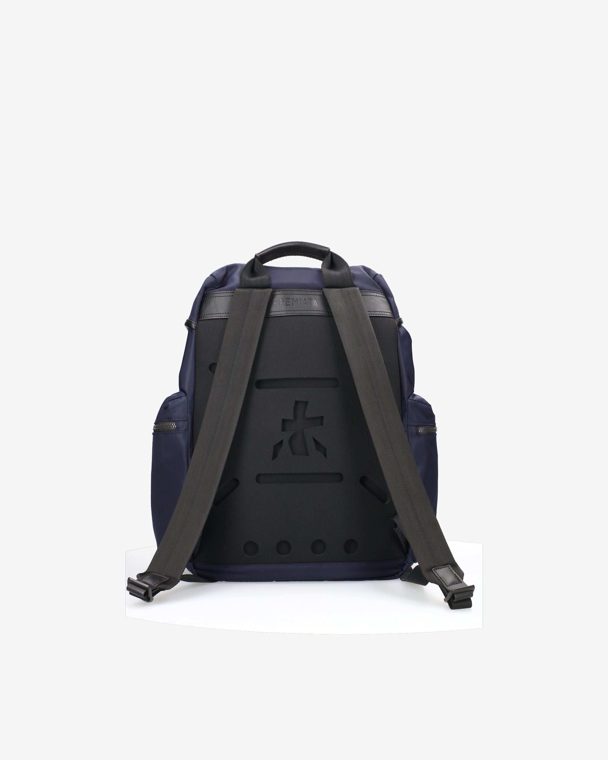 Un modello capiente e versatile in gabardine di nylon di prima qualità con trattamento antisfilacciamento e idrorepellente. Schienale e spallacci imbottiti in EVA per un maggiore comfort. Tasche laterali impermeabili con finiture in pelle di vitello e chiusure in metallo opaco.