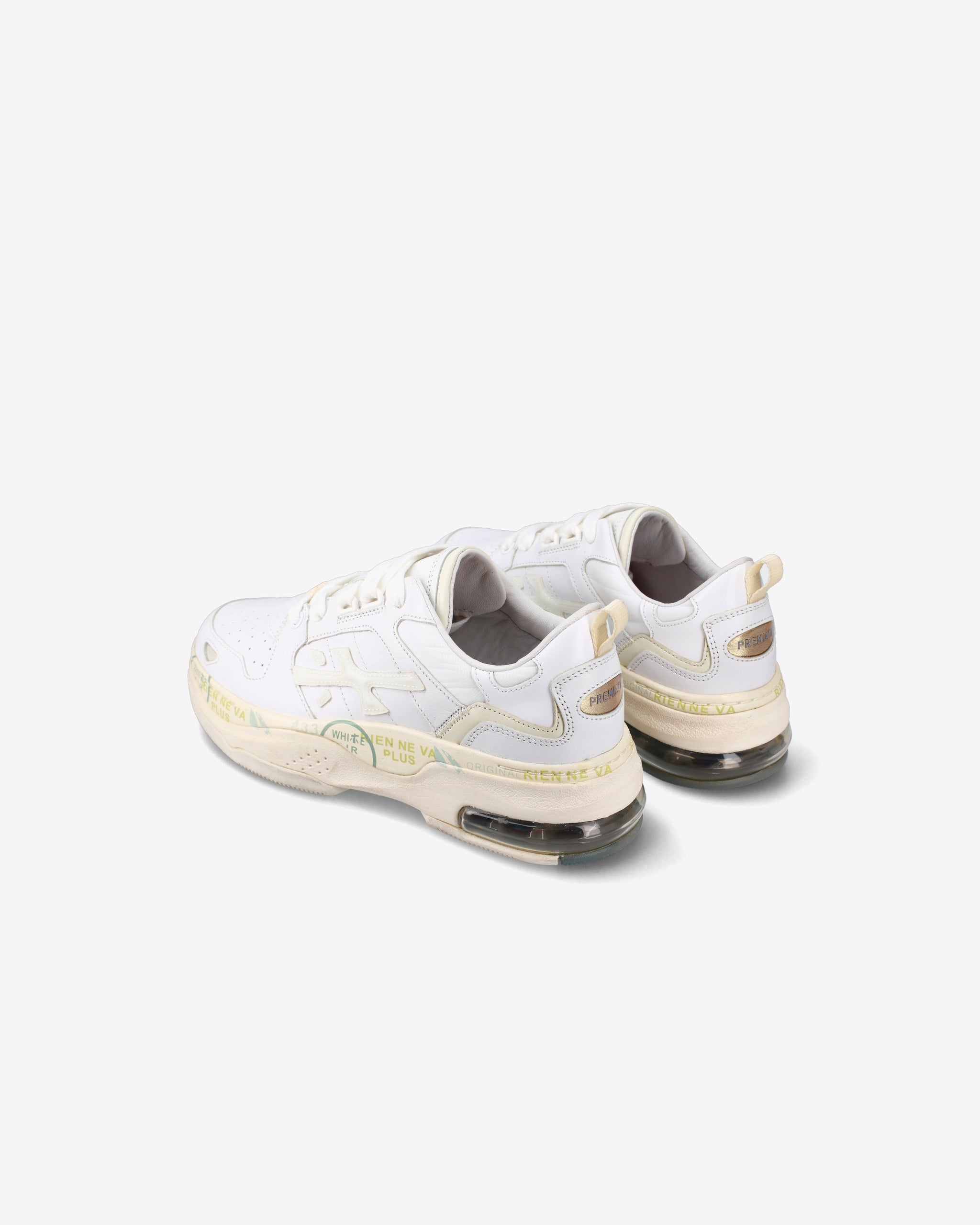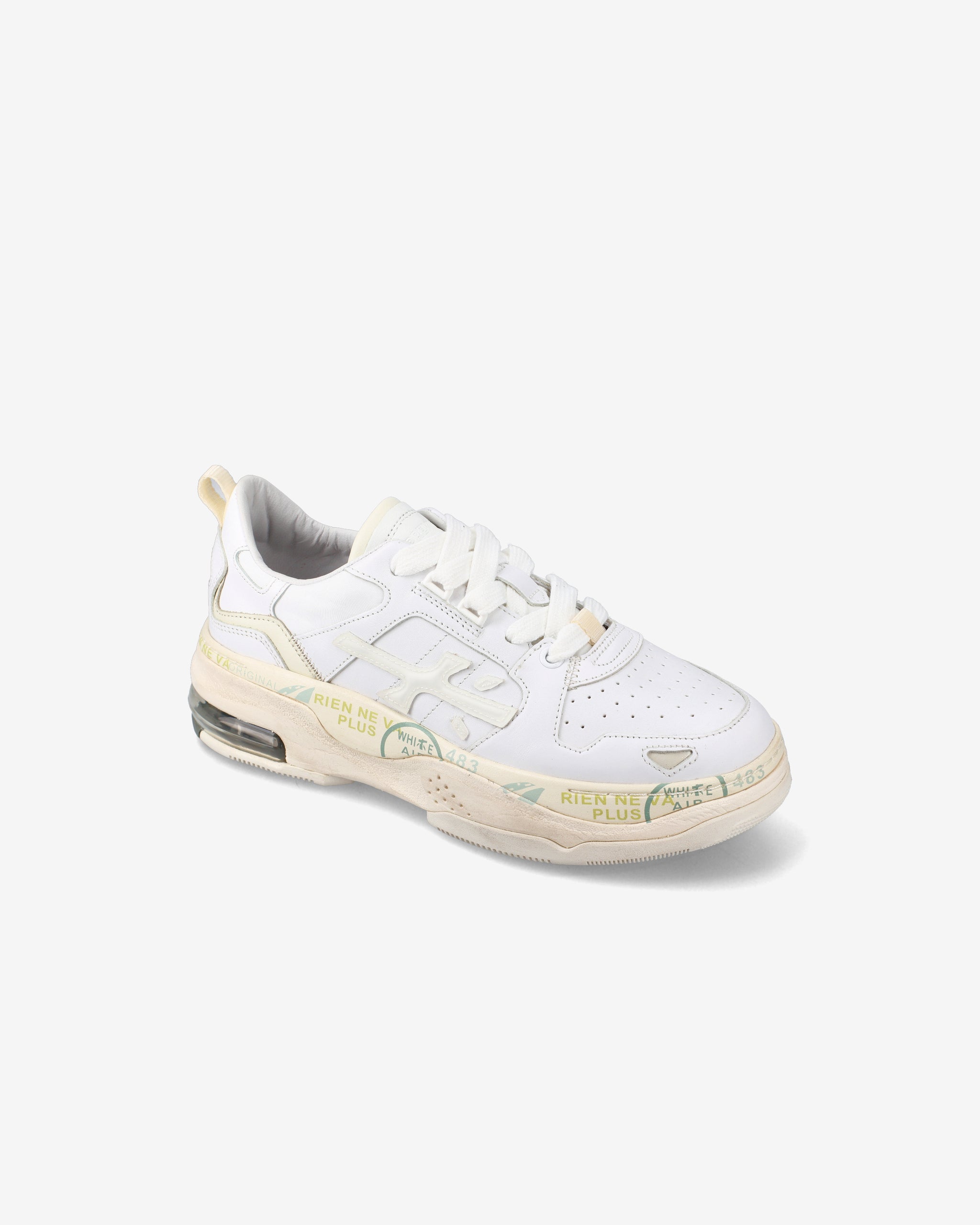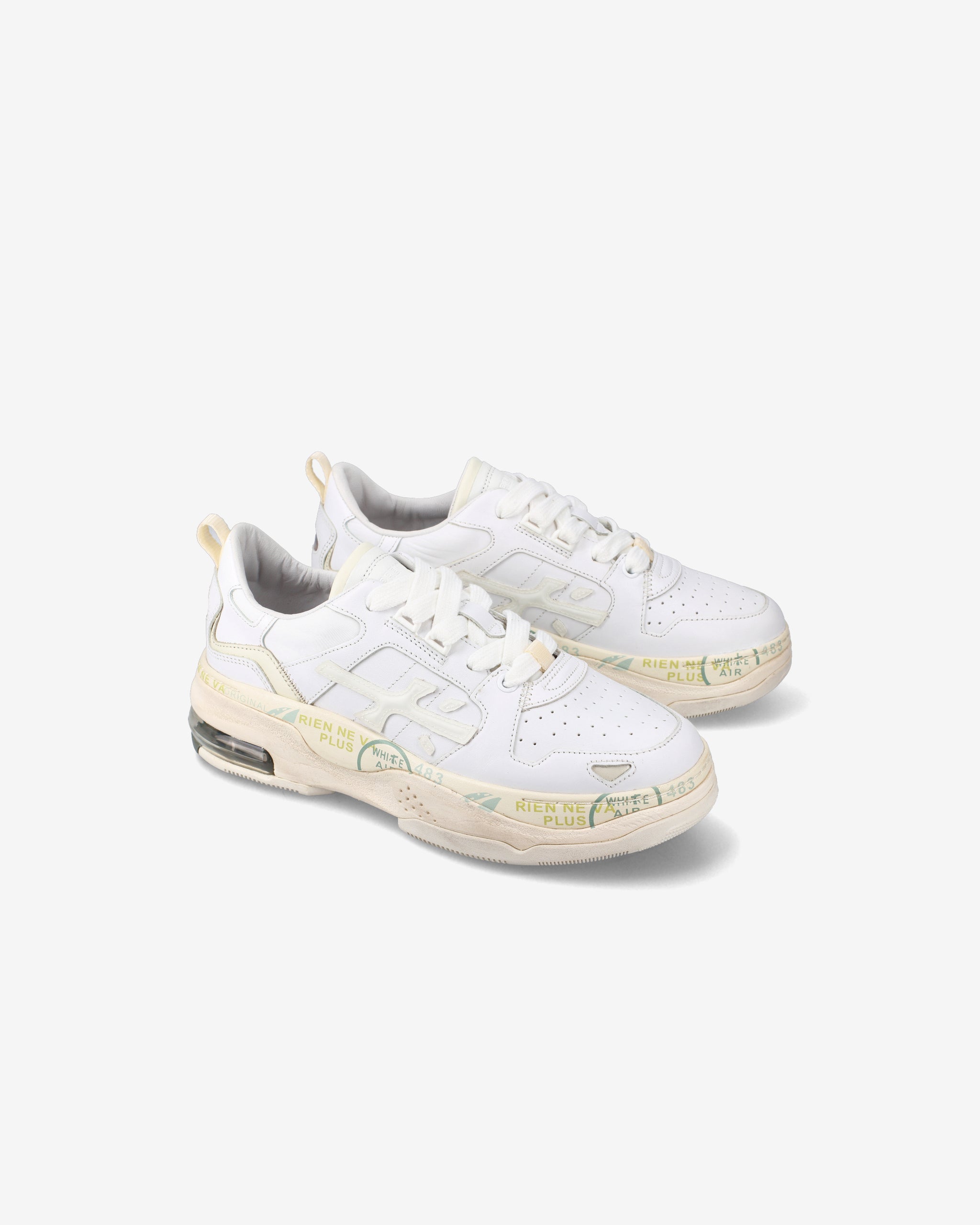 Una sneakers con un design unico nella tonalità del bianco, realizzata con una combinazione attenta di pellami pregiati e tessuti, ad arricchire il tutto i diversi elementi che ne identificano il brand. Il fondo è un mix di vari componenti che regalano un estremo comfort.