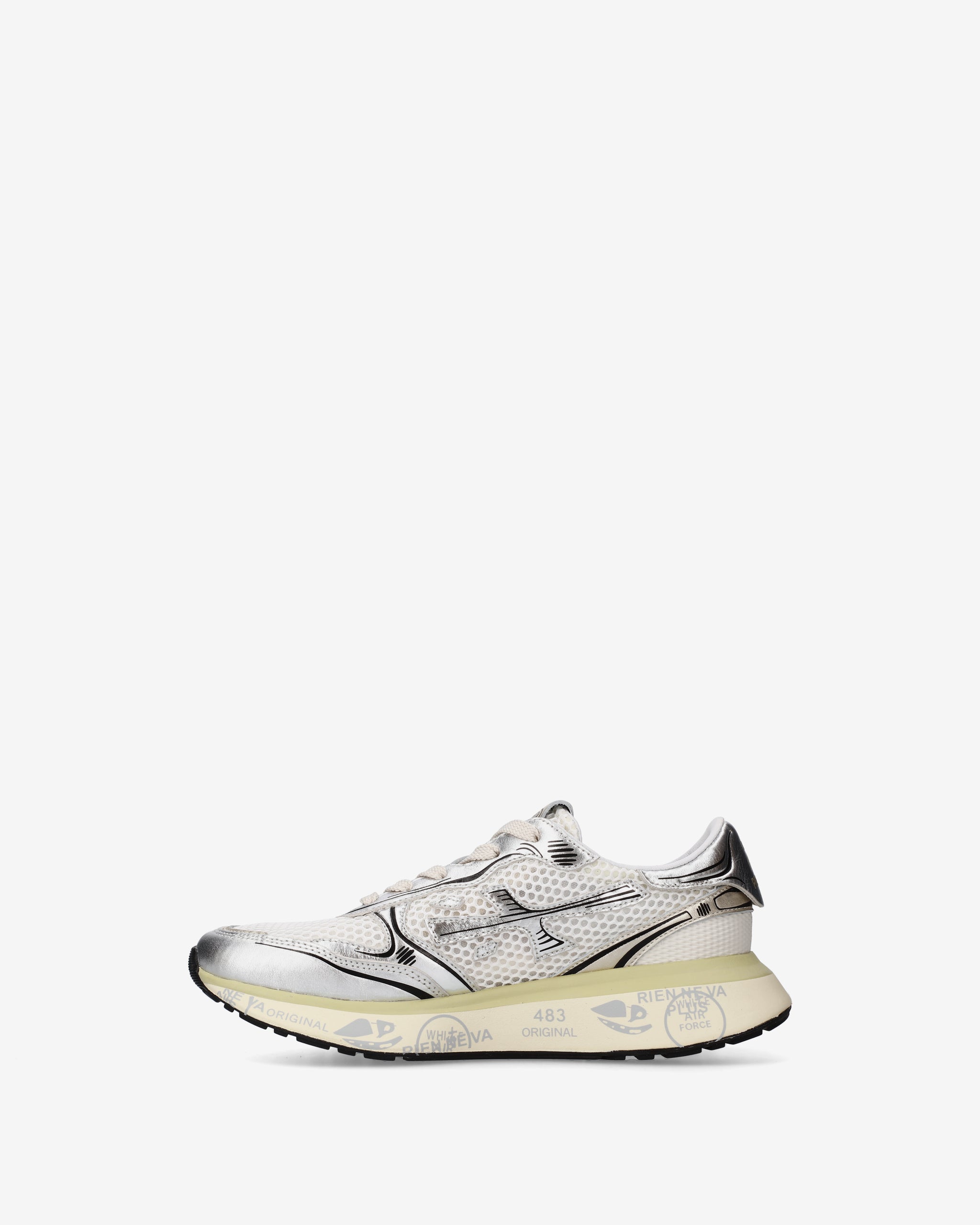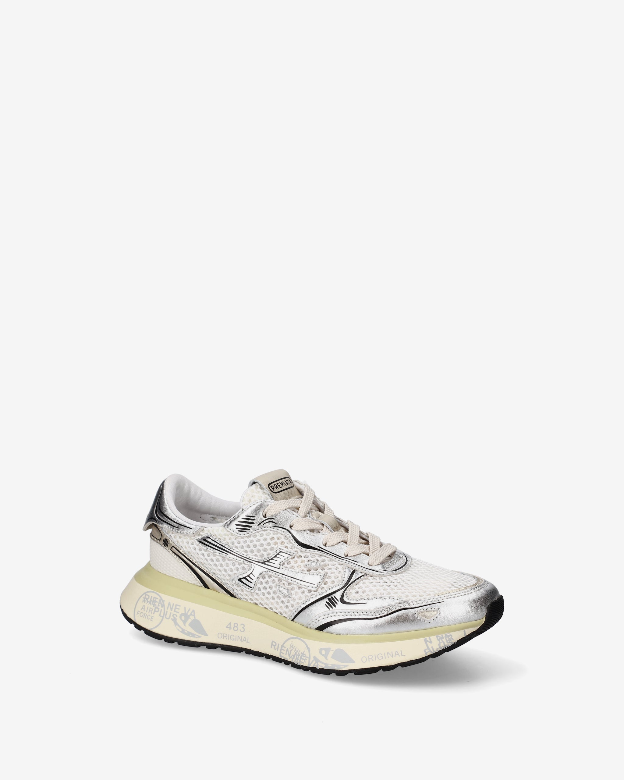 Stile e funzionalità si fondono in una sneaker rétro running rivisitata in chiave moderna. Realizzata con materiali di alta qualità, combina suede, pelle e tessuto per un look distintivo. La suola, arricchita dagli iconici dettagli stile Premiata, esalta l'identità urban e casual-chic.