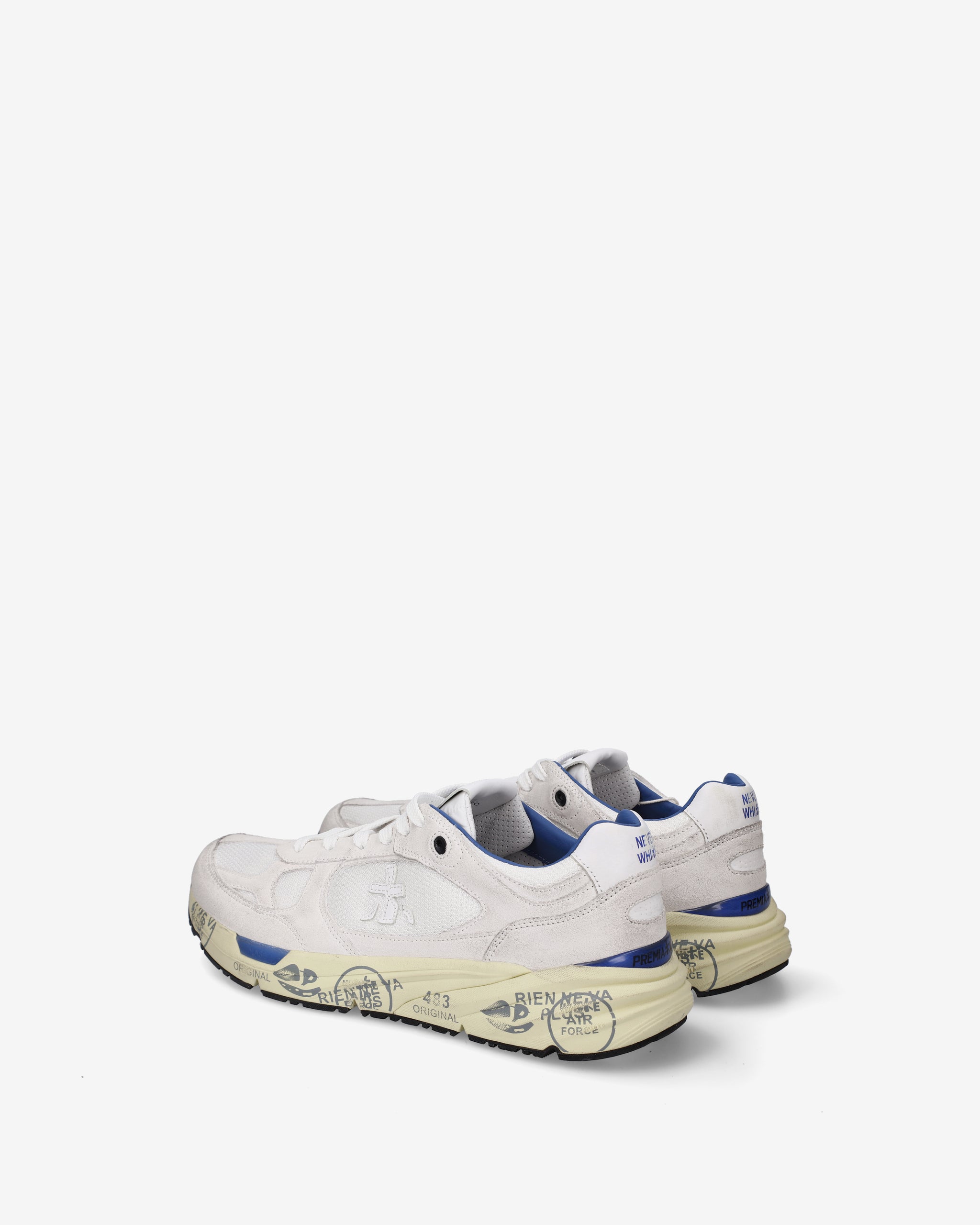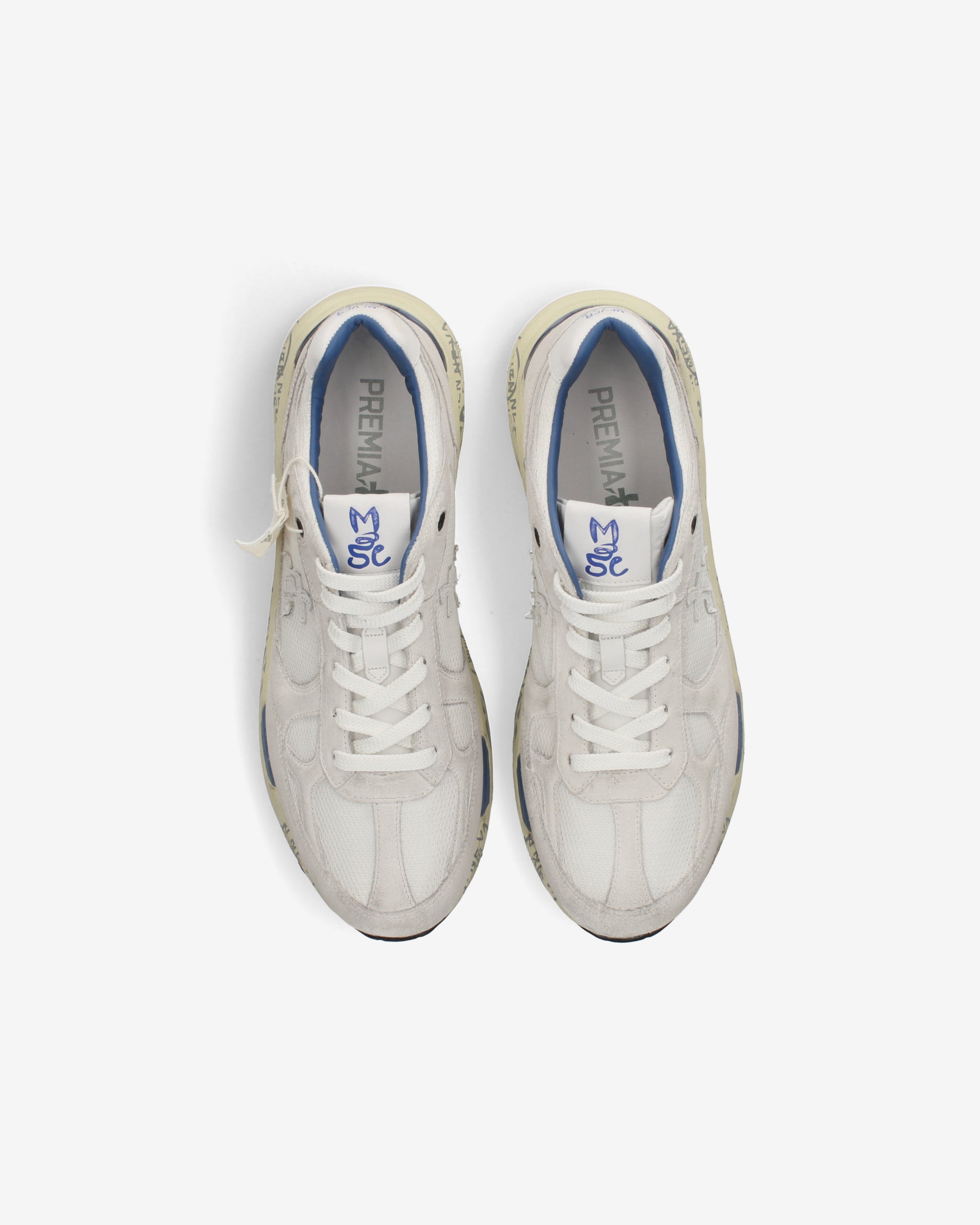 Risentono del mood nineties, combinano una silhouette moderna con materiali pregiati e dettagli vivaci. Fedeli al design Premiata, ne conservano tutti gli elementi chiave: il logo che decora i laterali, la scritta MASE che si evince sull’etichetta, trattamenti e dettagli a contrasto che ne risaltano la visibilità.
