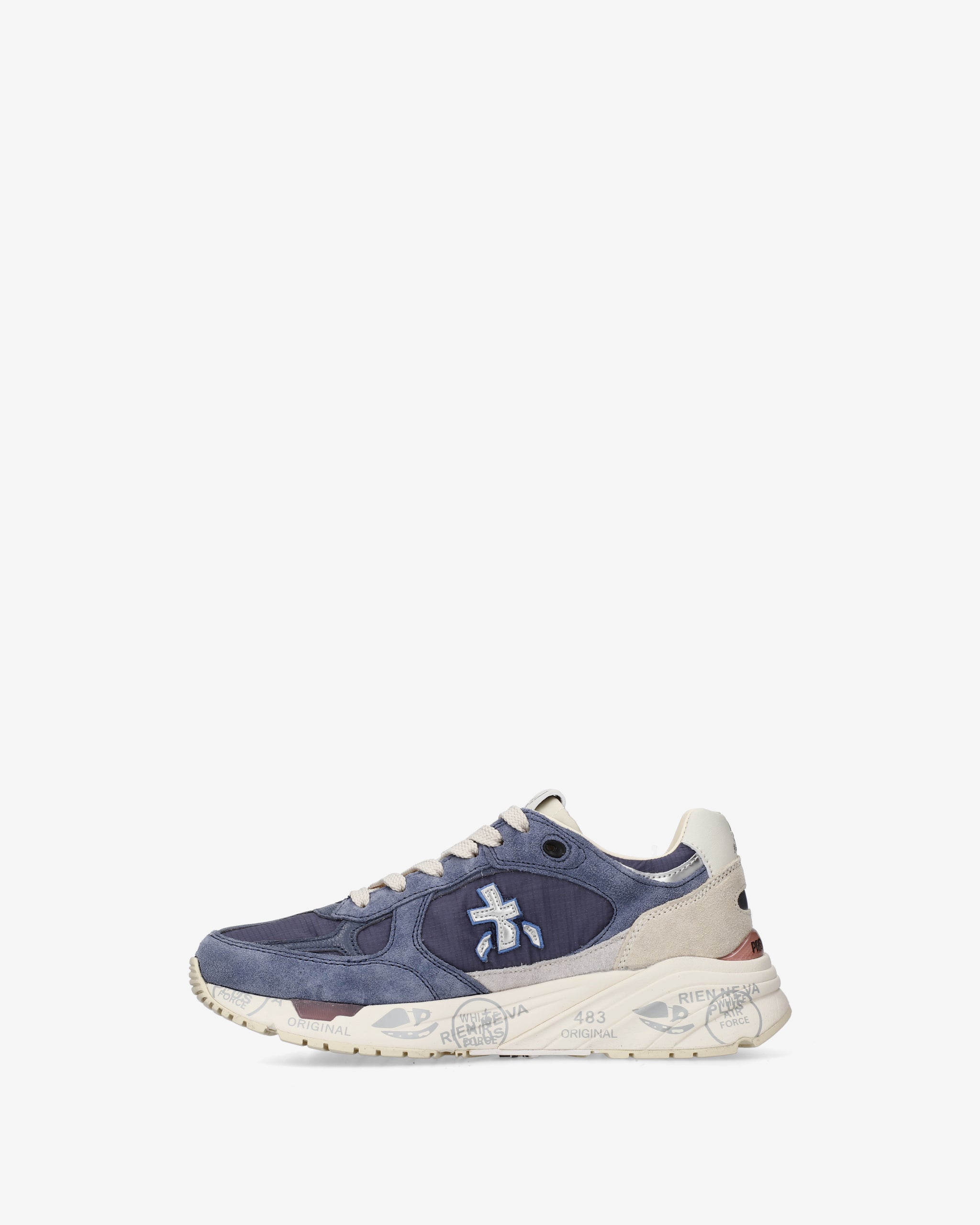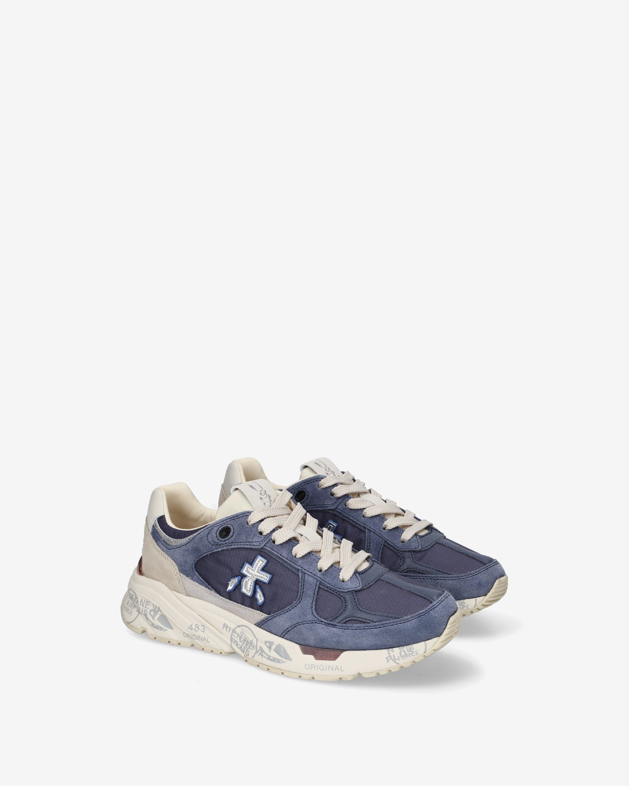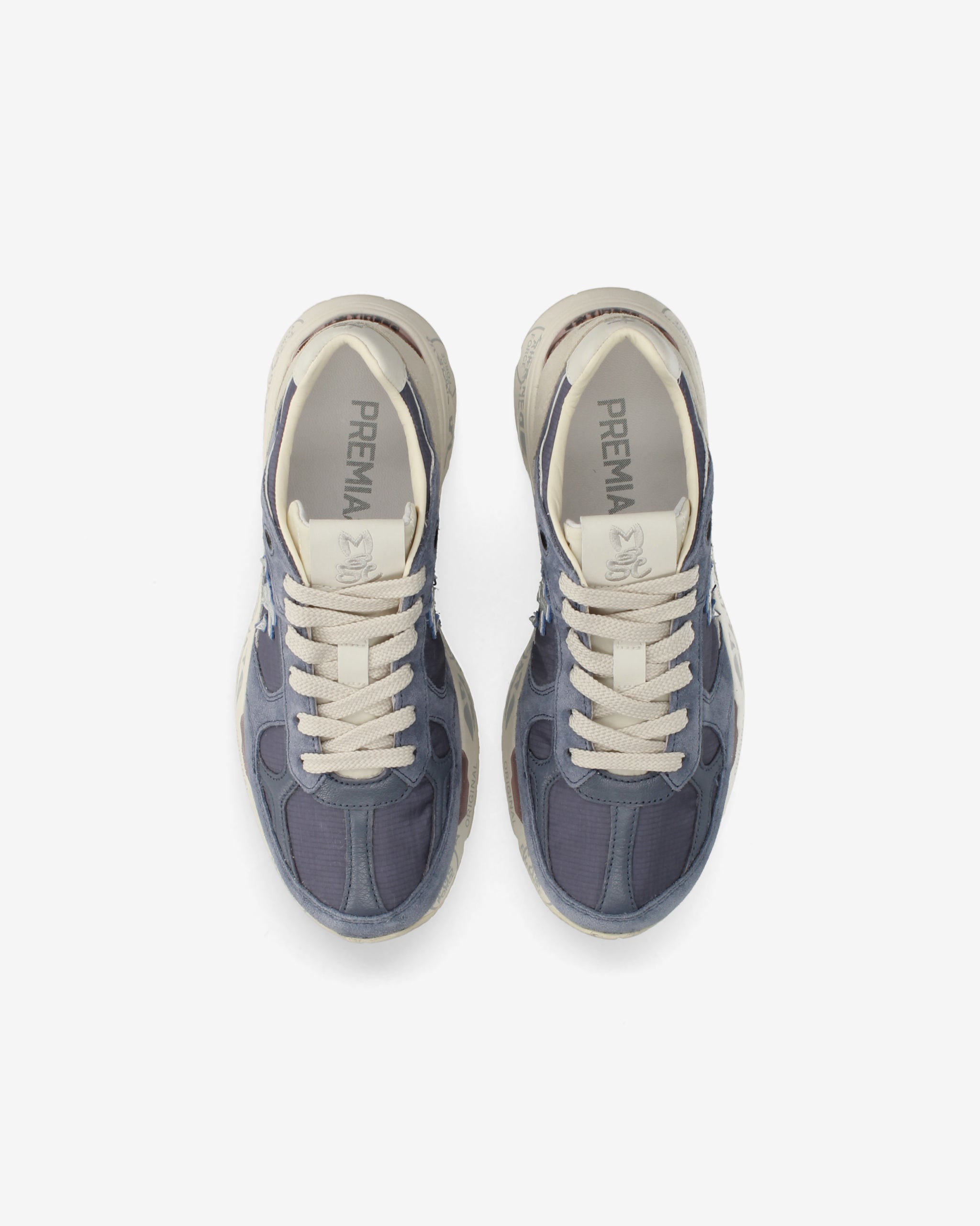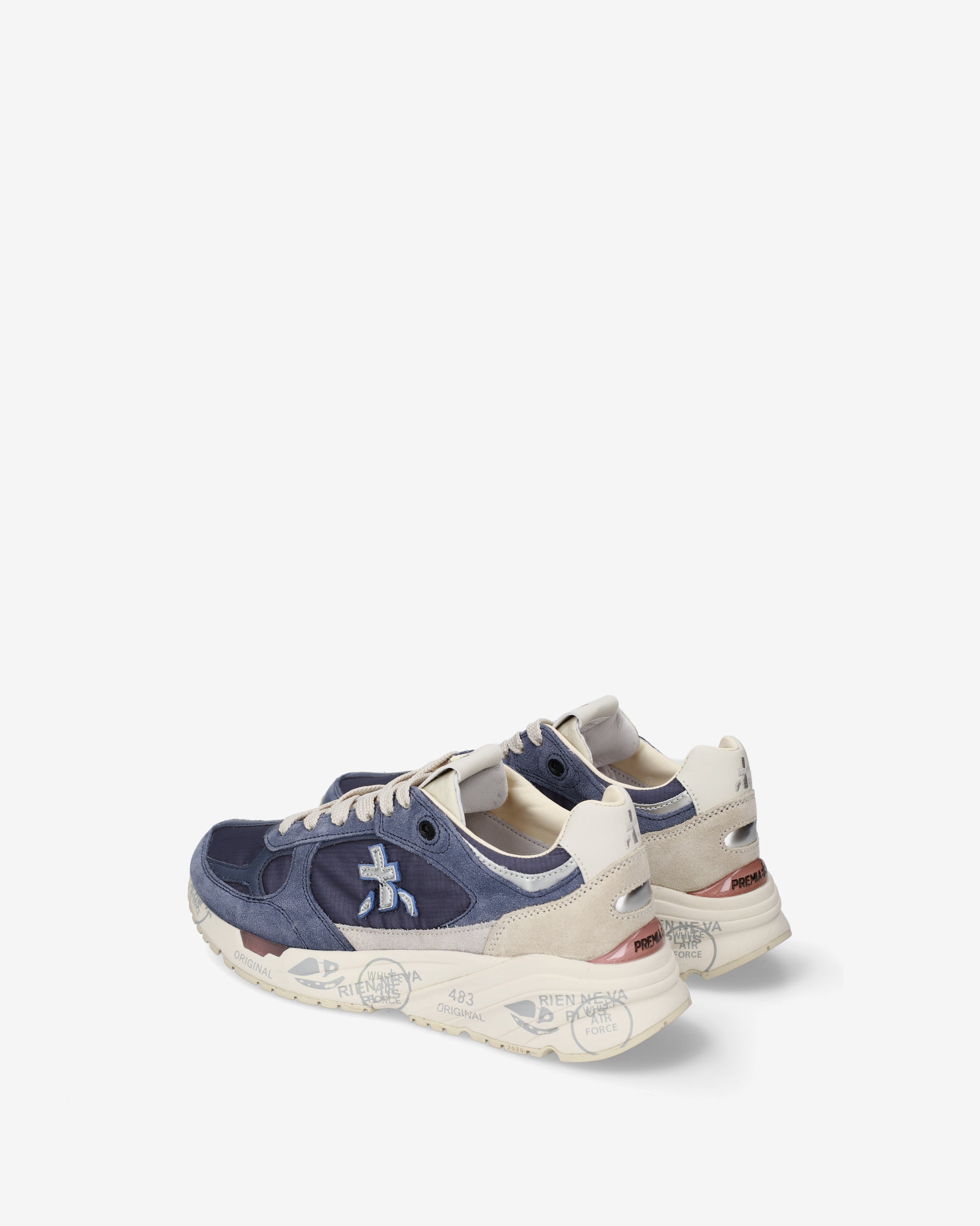 Risentono del mood nineties, combinano una silhouette moderna con materiali pregiati e dettagli vivaci. Fedeli al design Premiata, ne conservano tutti gli elementi chiave: il logo che decora i laterali, la scritta MASE che si evince sull’etichetta, trattamenti e dettagli a contrasto che ne risaltano la visibilità.
