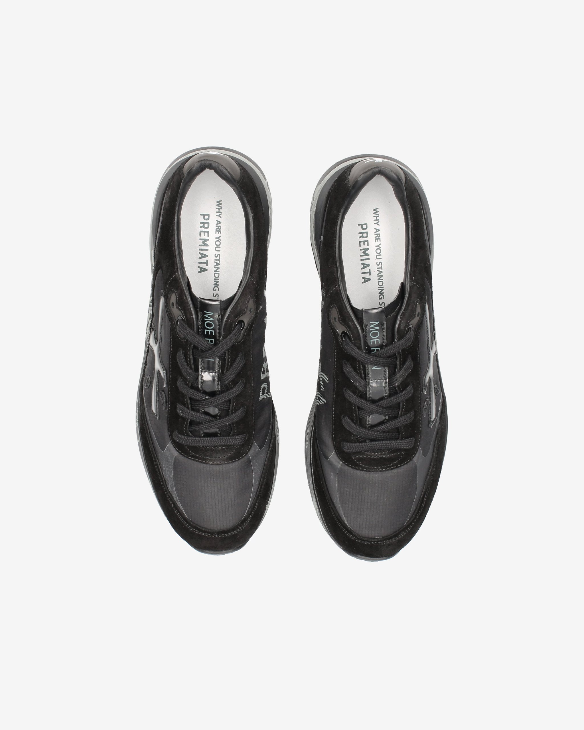 Ideate per stupire. La Moe run si basa sulla leggerezza del movimento, la stabilità e la sensazione ammortizzante data dall'innovazione del fondo. La nuova silhouette è ricca di dettagli: logo sul laterale esterno, scritta PREMIATA sul laterale interno e nome del modello sull'etichetta.