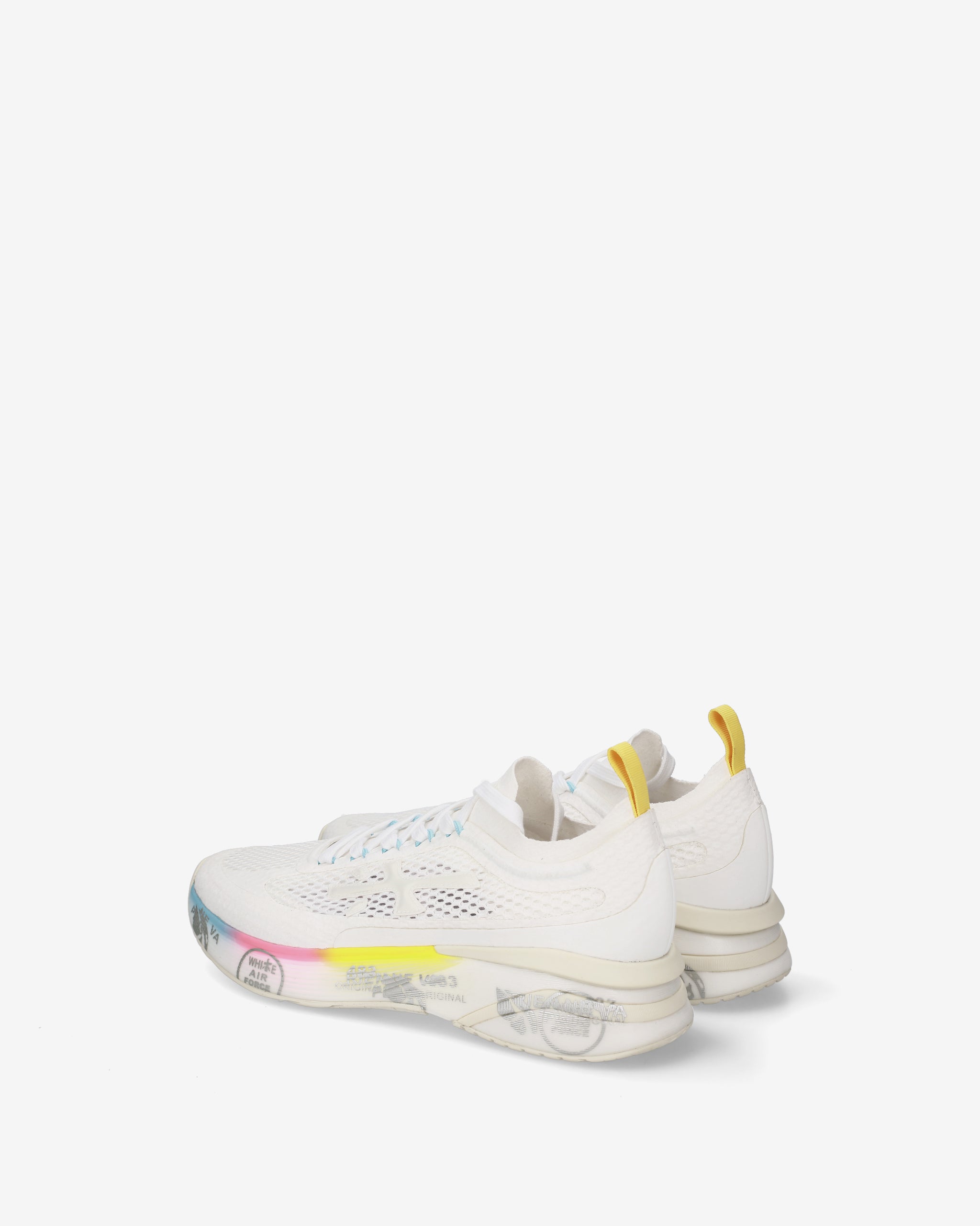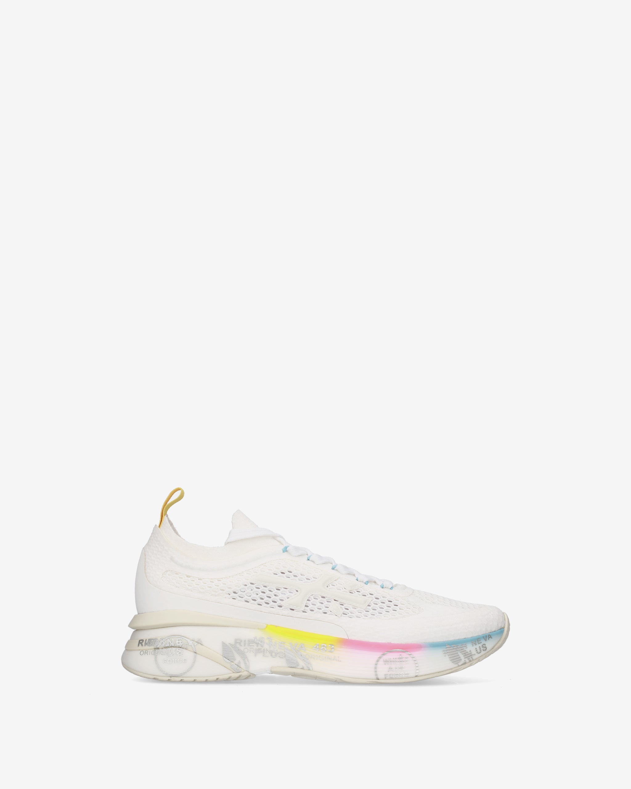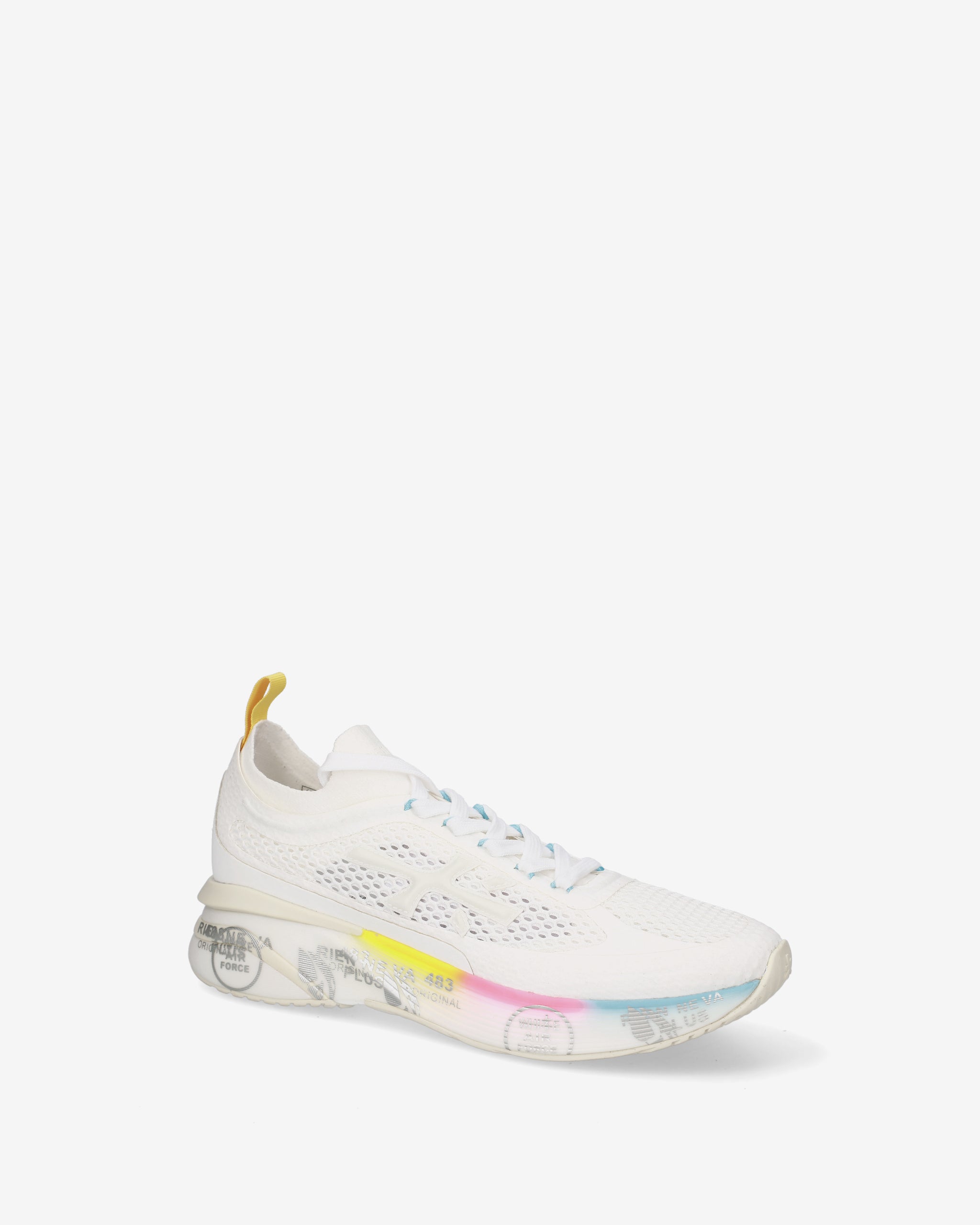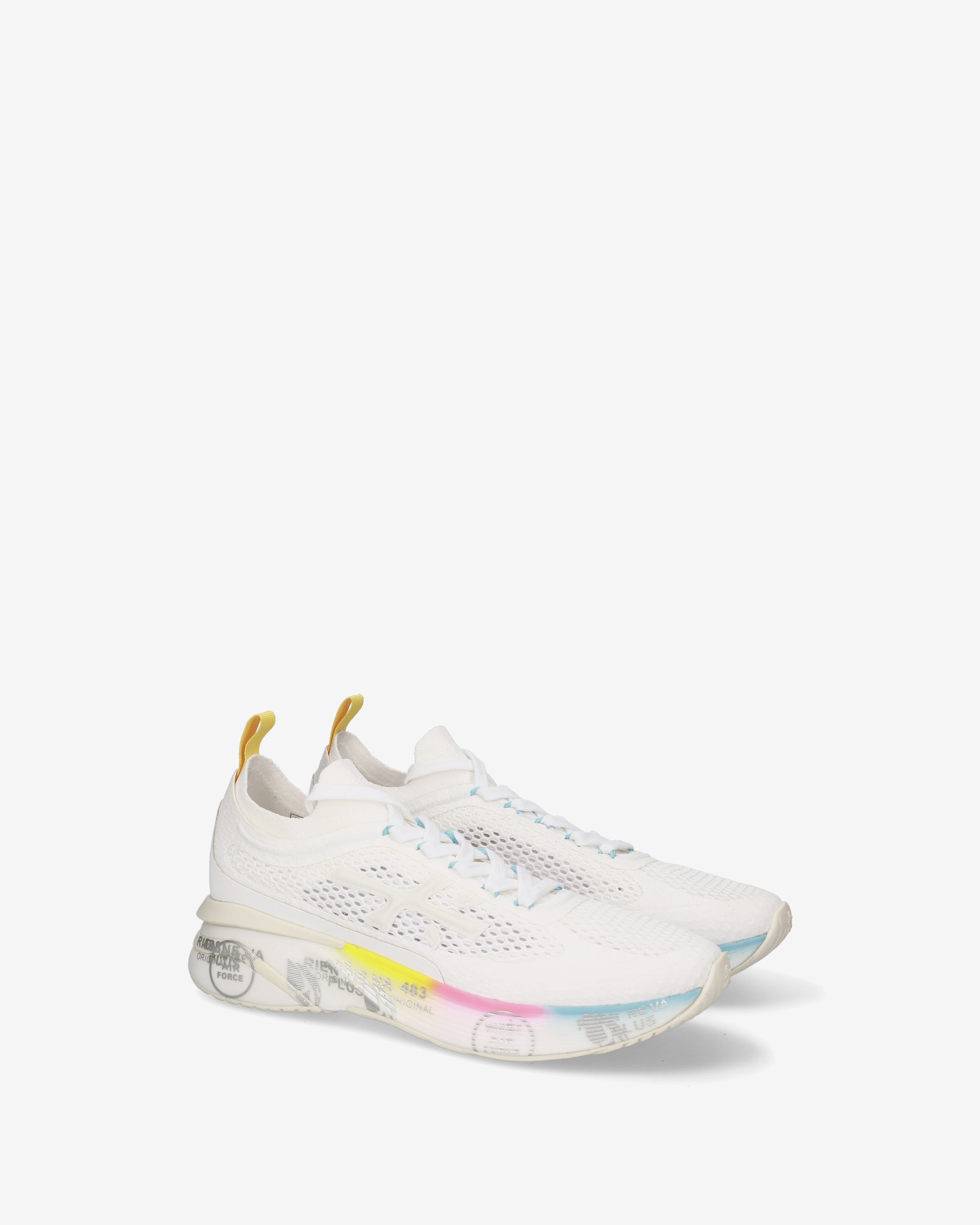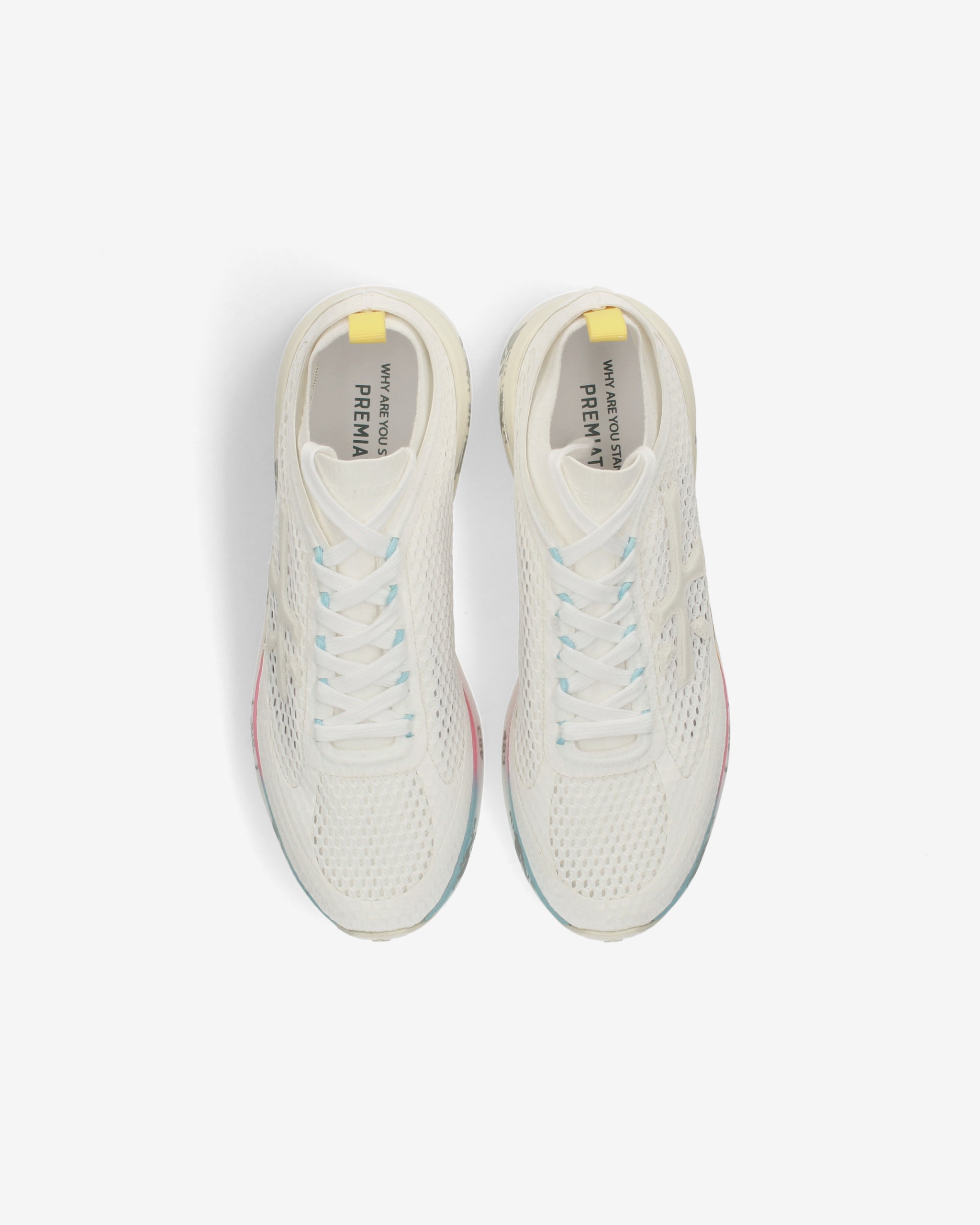 Ideate per stupire. La Moerun si basa sulla leggerezza del movimento, la stabilità e la sensazione ammortizzante data dall'innovazione del fondo. La nuova silhouette è ricca di dettagli: logo sul laterale esterno, scritta PREMIATA sul laterale interno e nome del modello sull'etichetta.