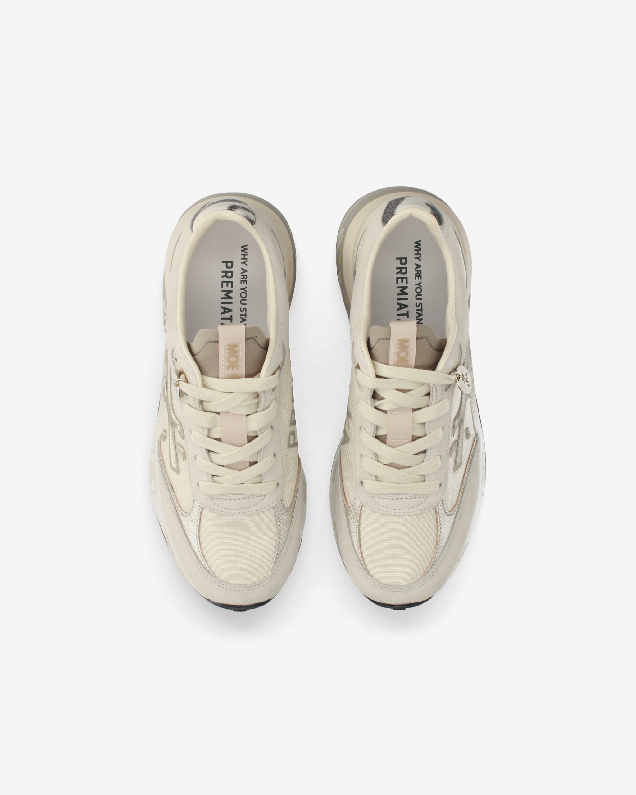 Ideate per stupire. La Moerun si basa sulla leggerezza del movimento, la stabilità e la sensazione ammortizzante data dall'innovazione del fondo. La nuova silhouette è ricca di dettagli: logo sul laterale esterno, scritta PREMIATA sul laterale interno e nome del modello sull'etichetta.
