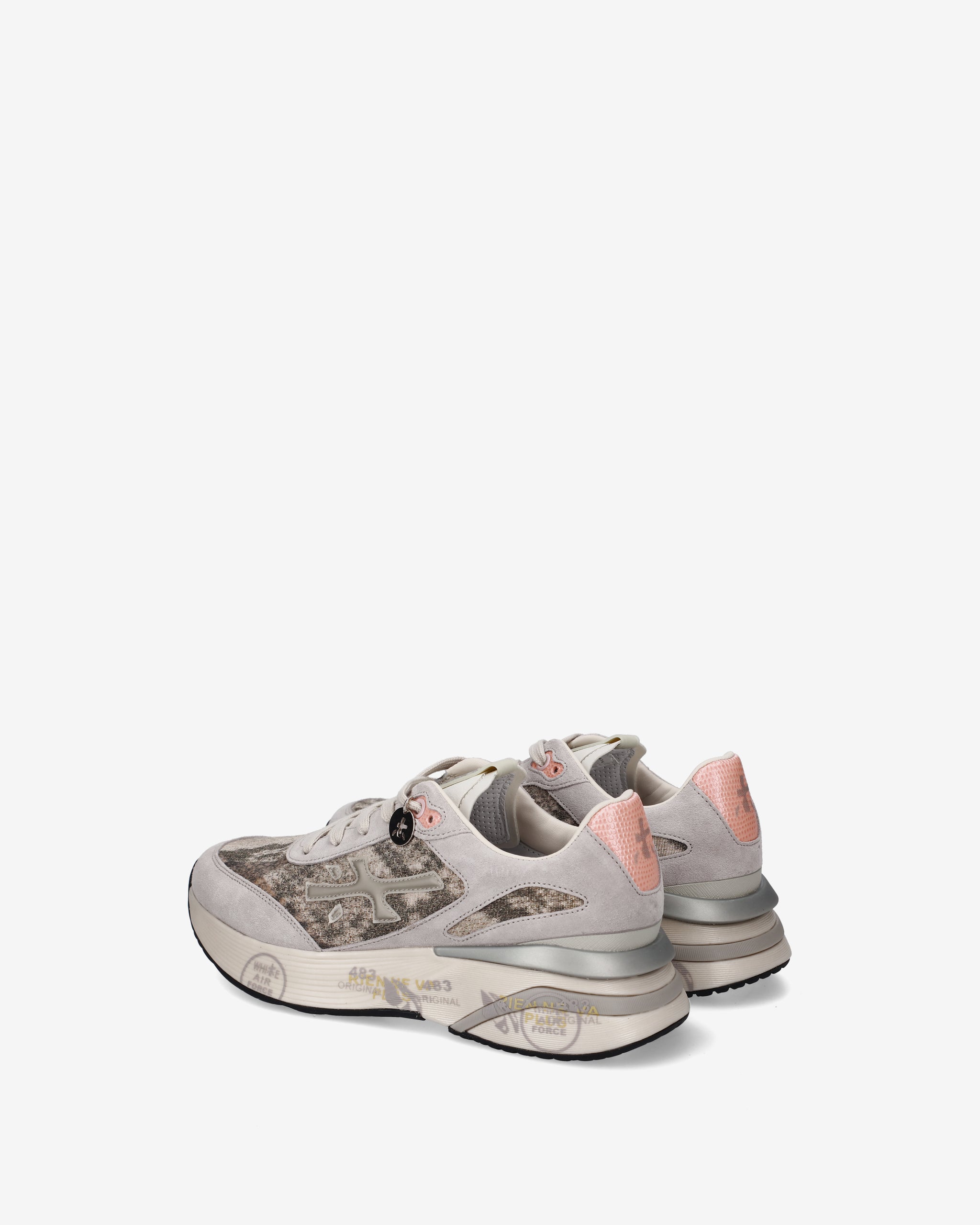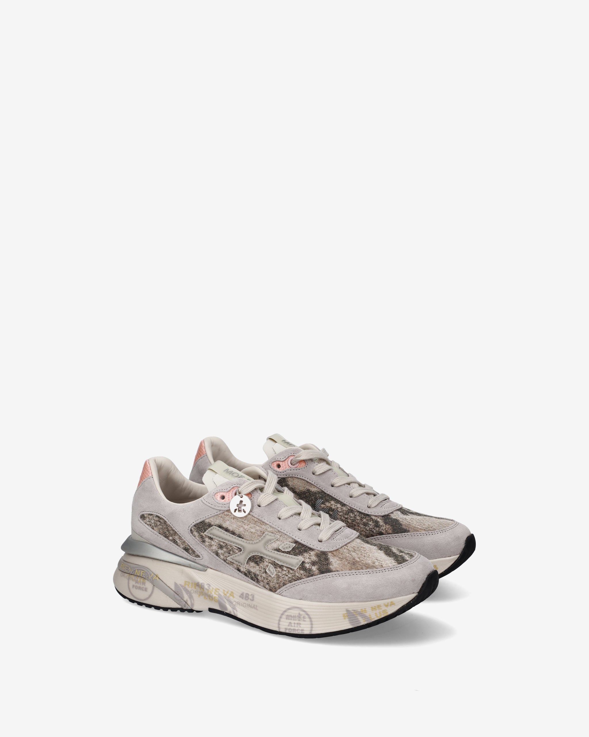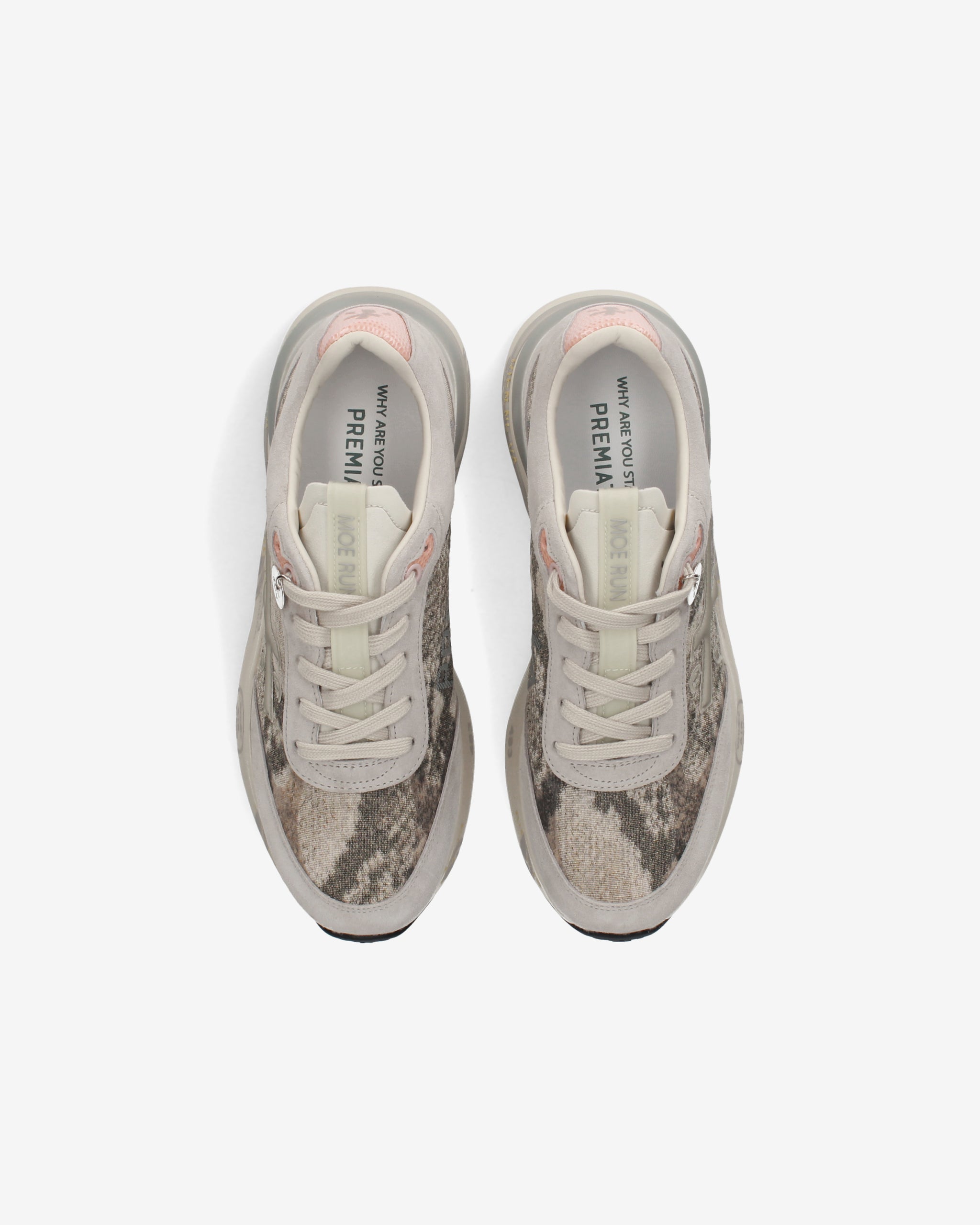 Ideate per stupire. La Moerun si basa sulla leggerezza del movimento, la stabilità e la sensazione ammortizzante data dall'innovazione del fondo. La nuova silhouette è ricca di dettagli: logo sul laterale esterno, scritta PREMIATA sul laterale interno e nome del modello sull'etichetta.