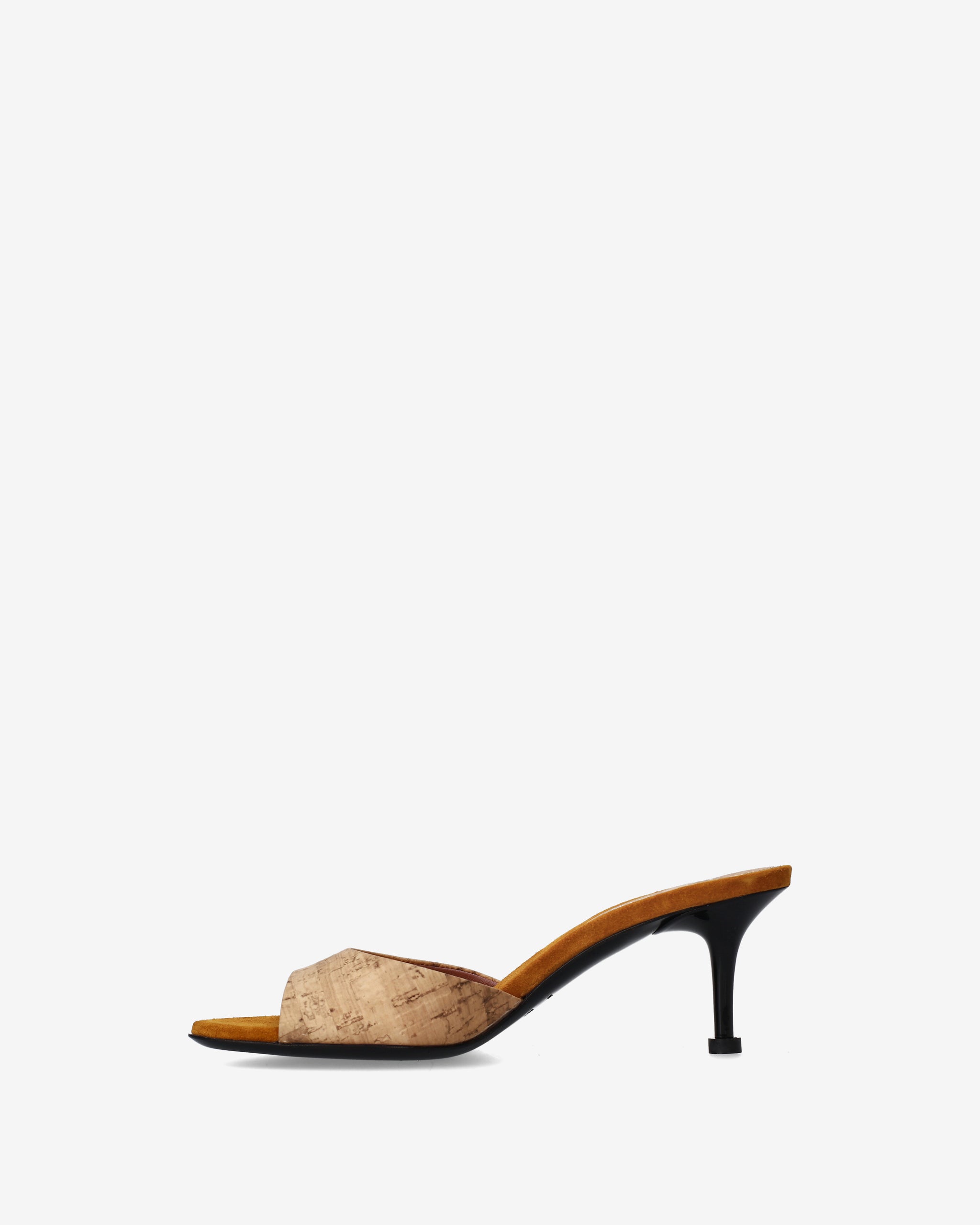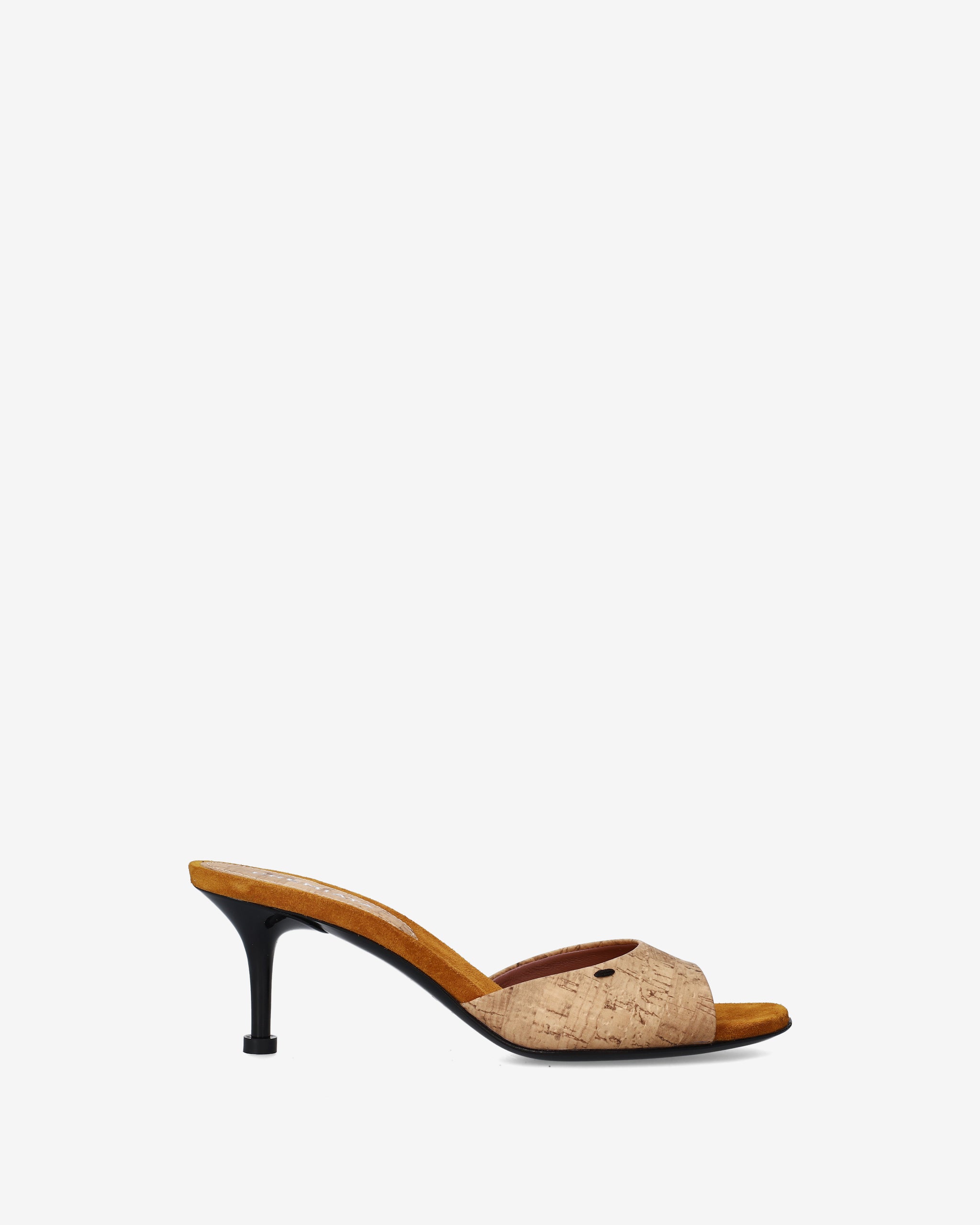 - Presenta un solettone anatomico in sughero granulare a vista, che aggiunge un elemento materico naturale e garantisce comfort alla calzata