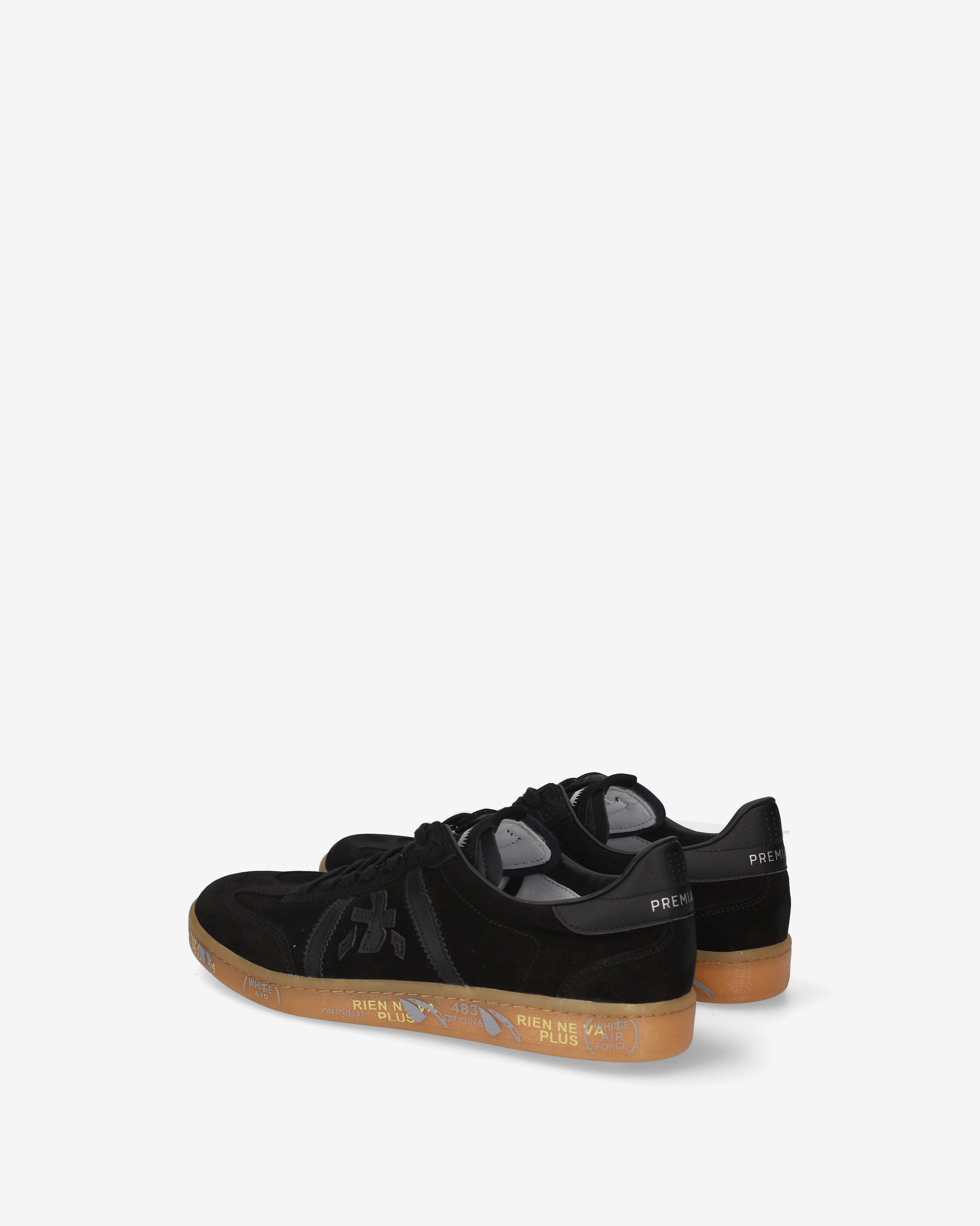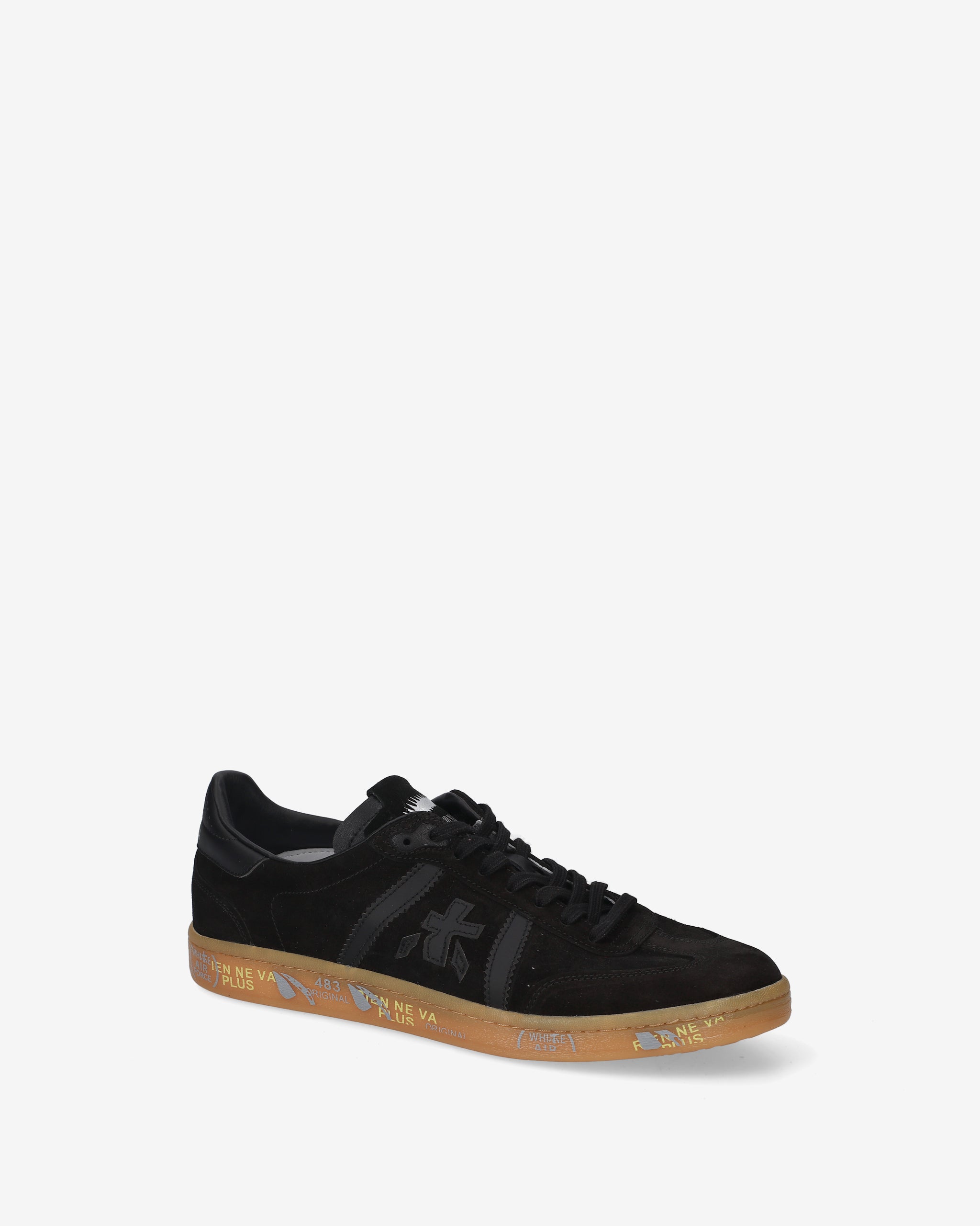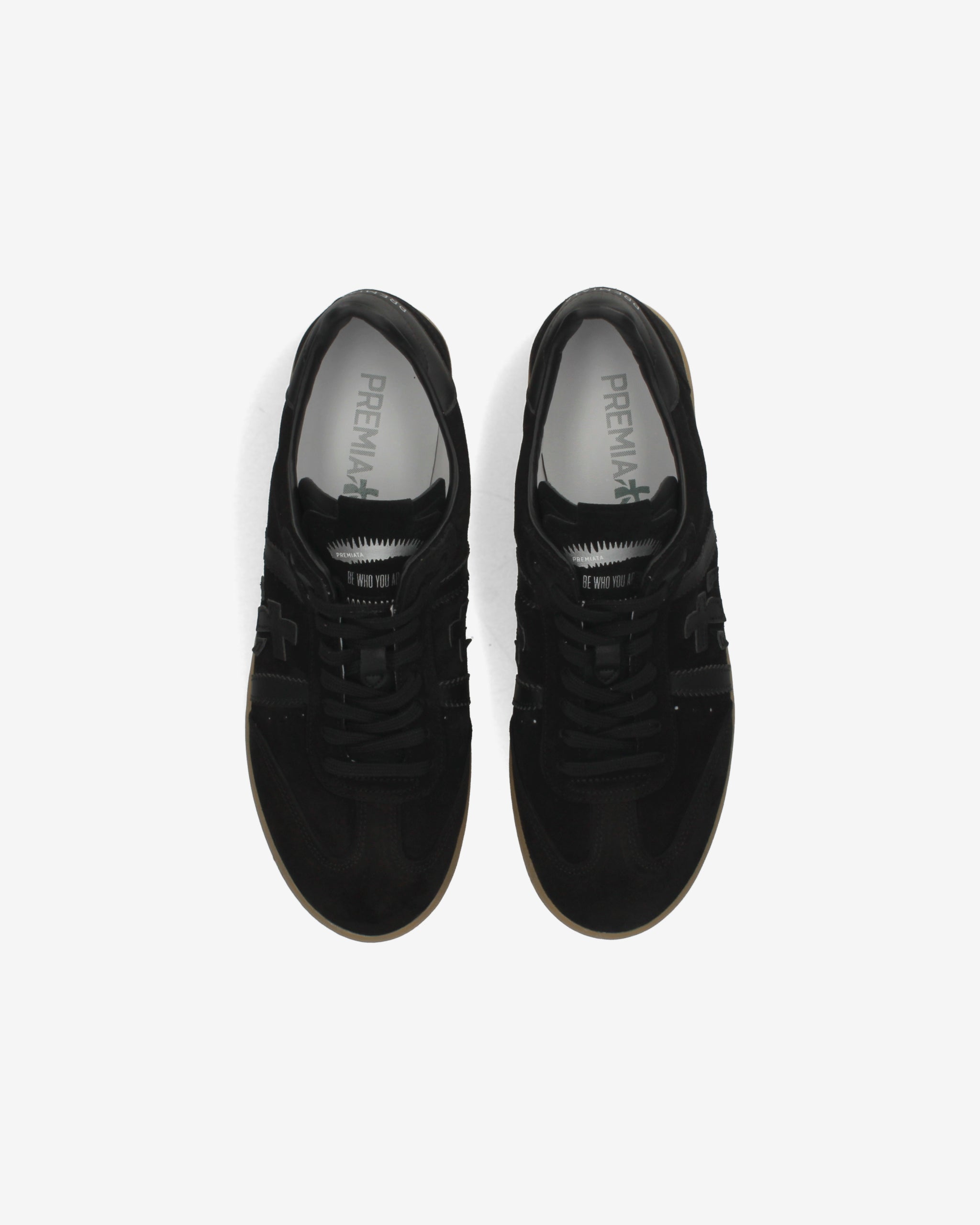 Bonnie with black suede upper, tone-on-tone black details, and gum sole. A mix of classic colors for a clean and sophisticated look.