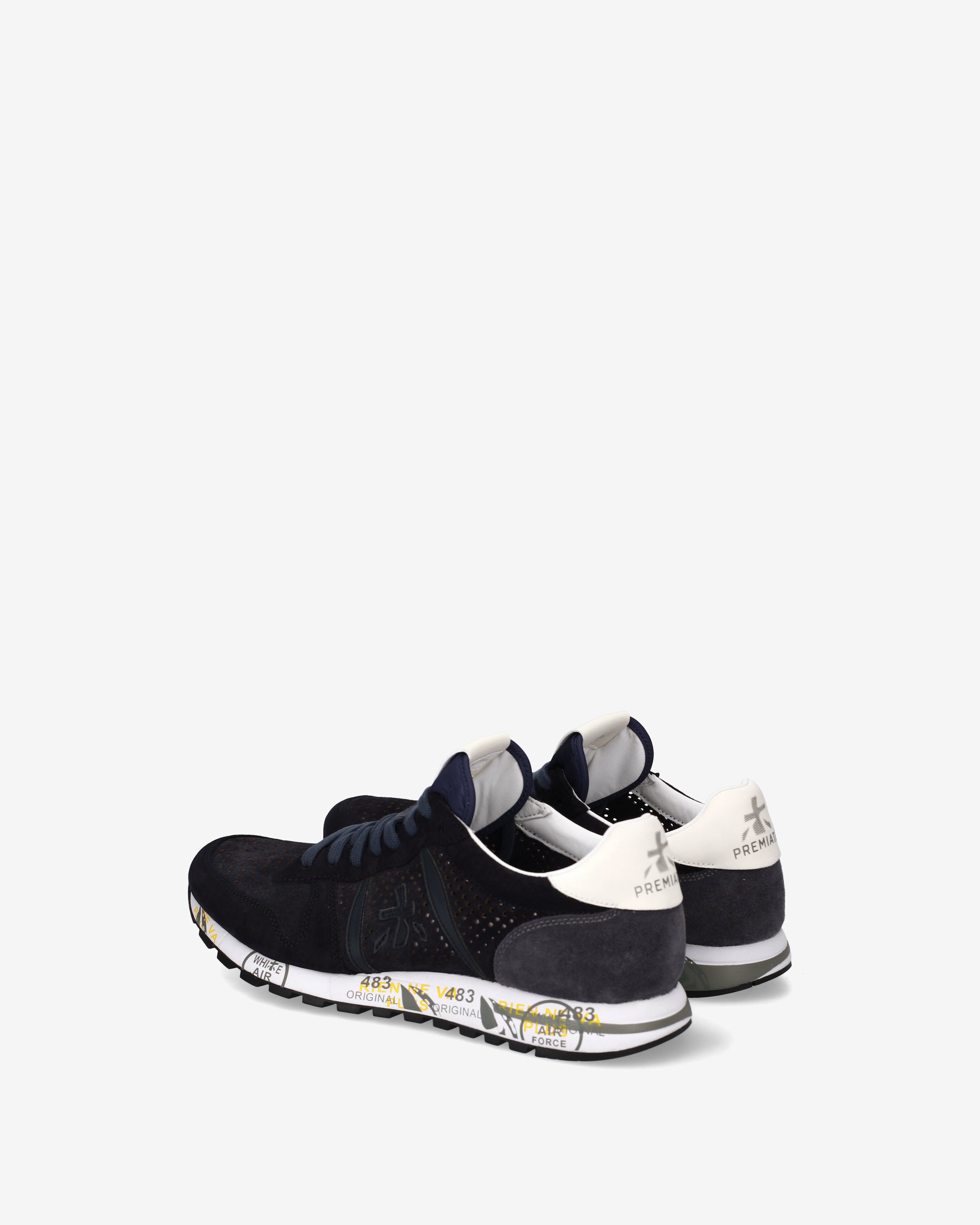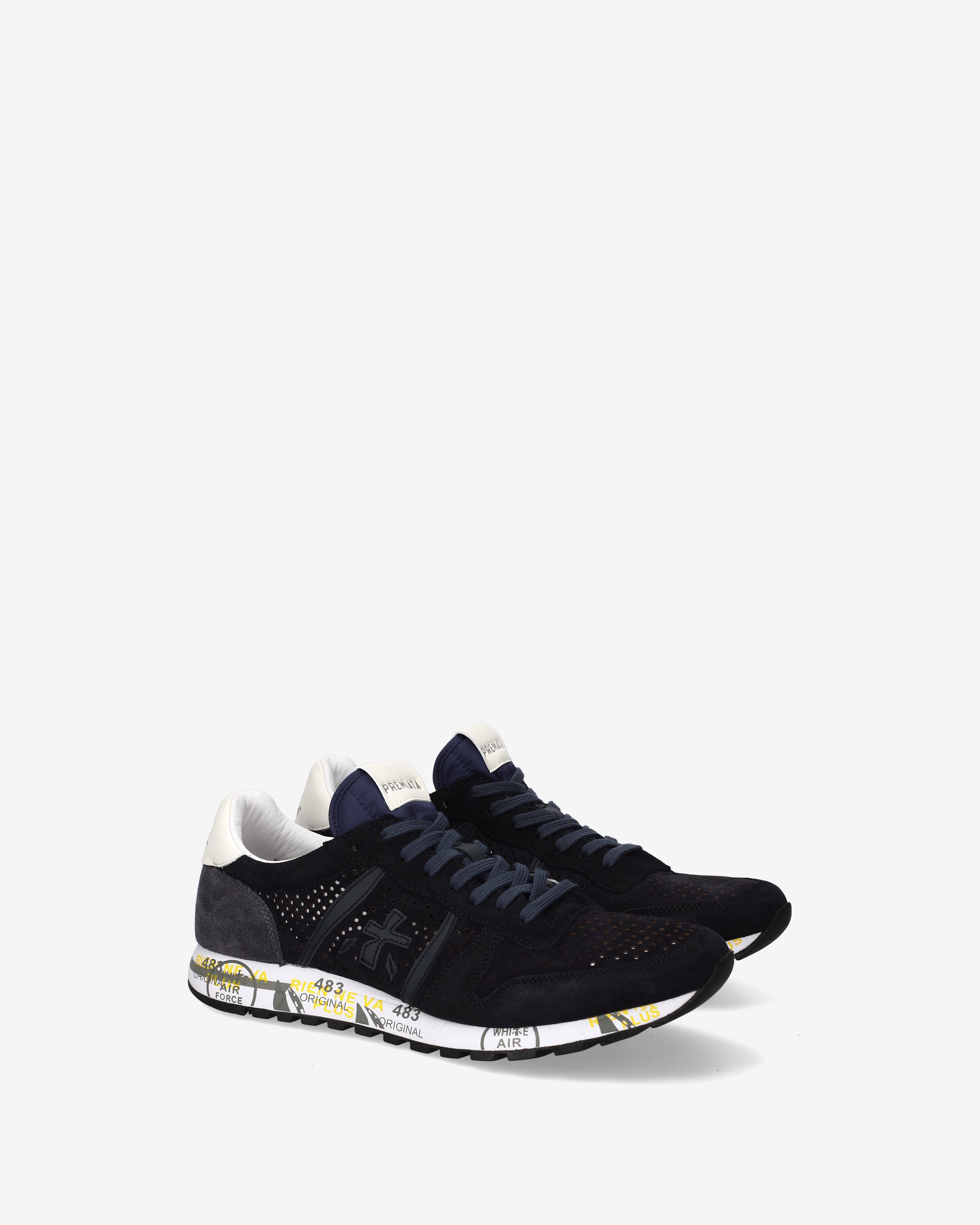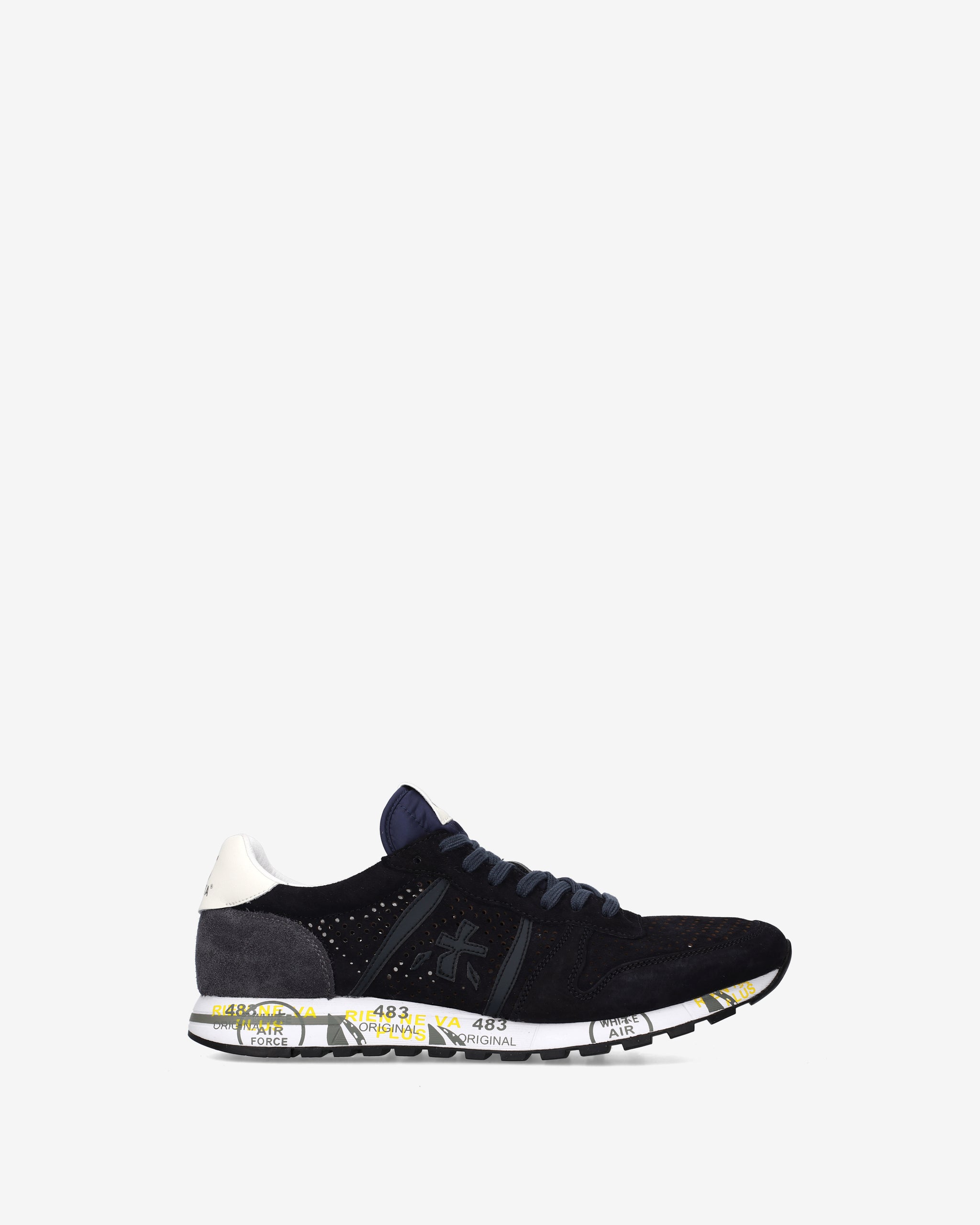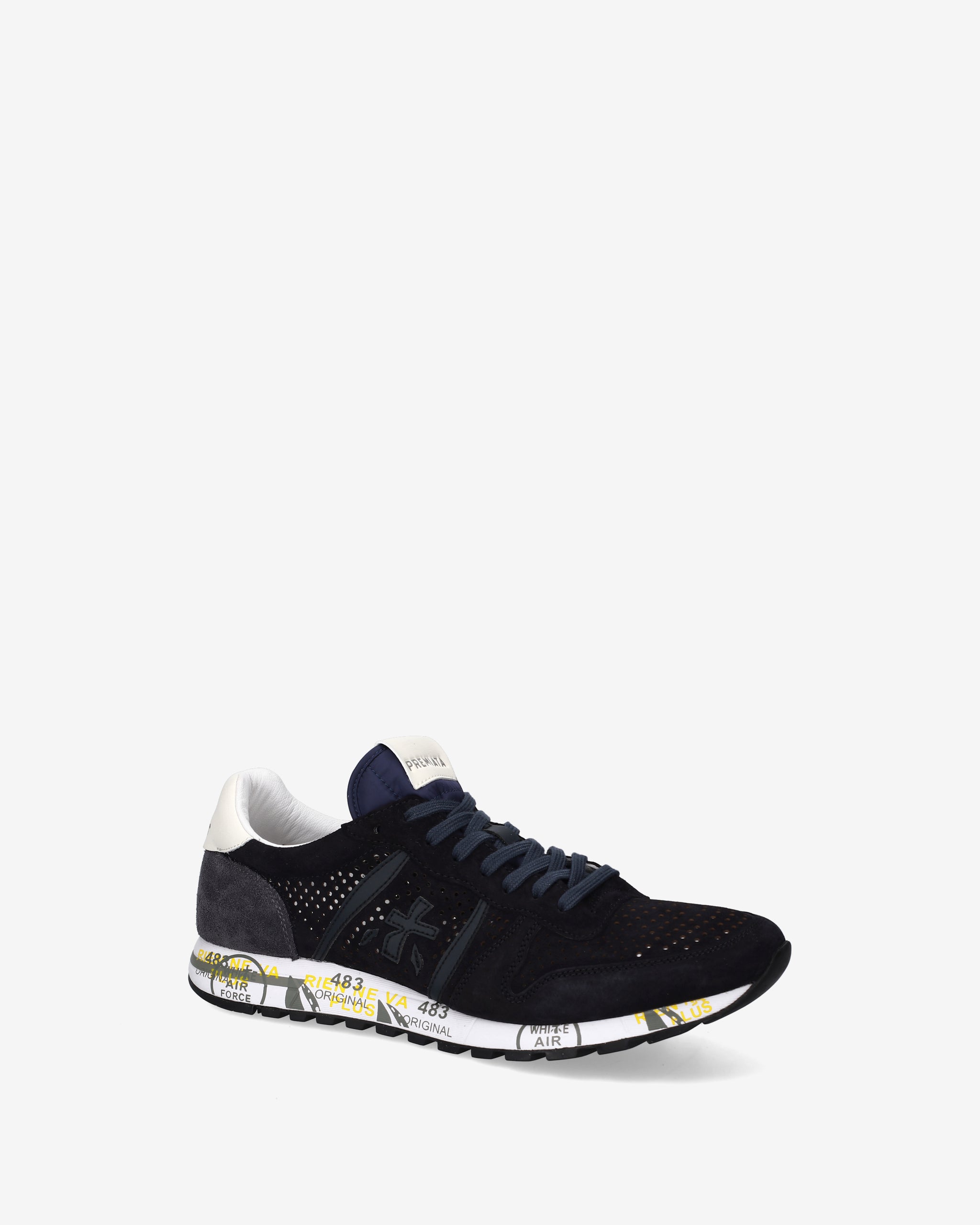 This men's shoe stands out for its retro style, lightness, and flexibility. Made of leather, perforated on the toe and sides, in shades of blue. Enriched with details that make it new, simple, but different. Look enhanced by the unmistakable Premiata logo.