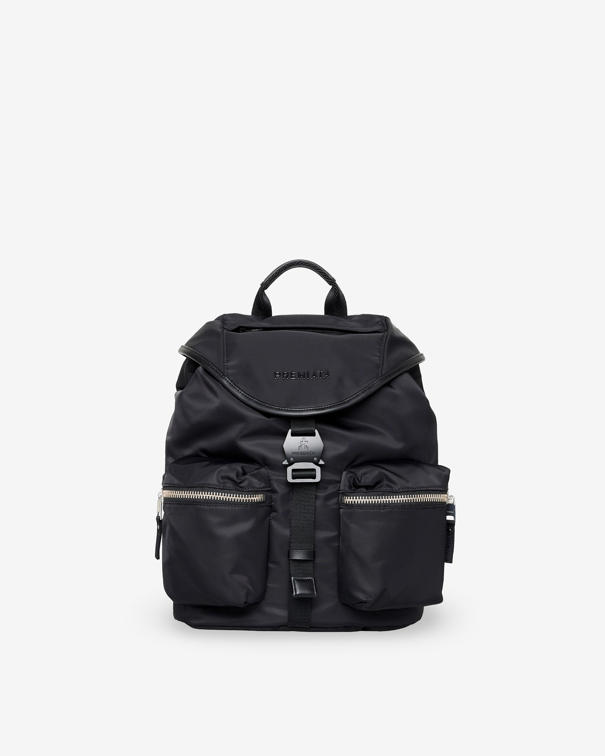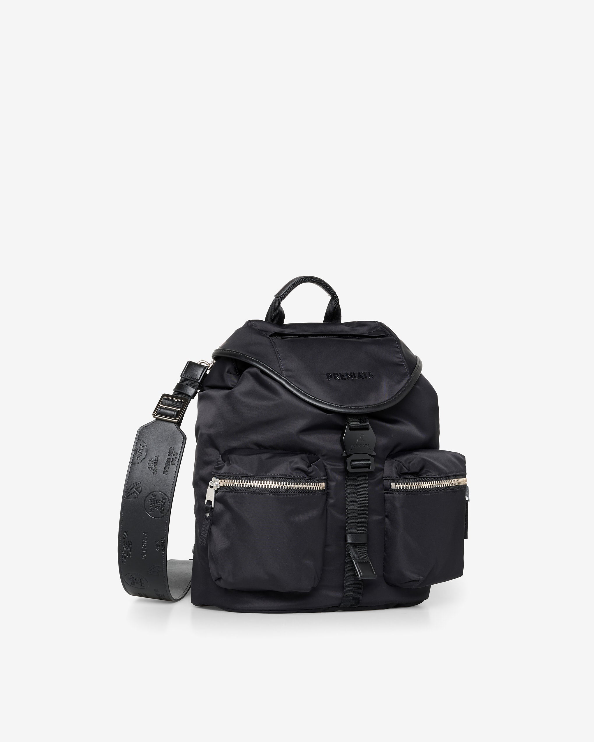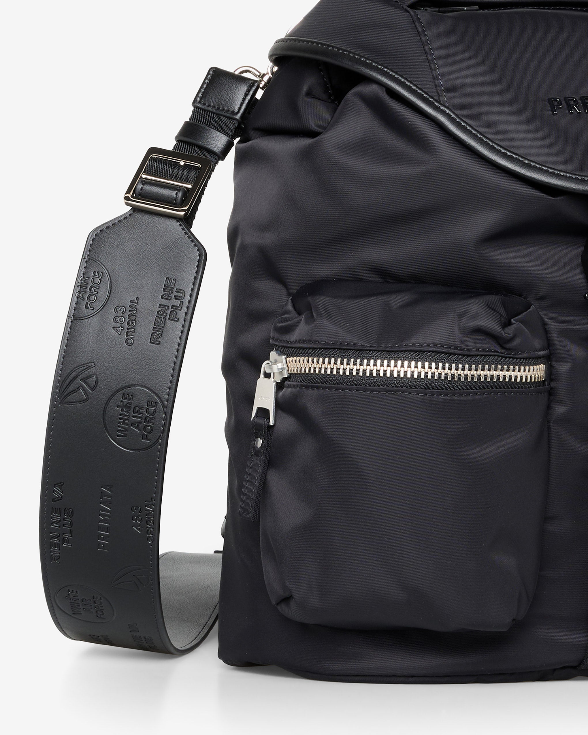 A spacious and versatile model in soft, high-quality rubberized fabric. EVA-padded back and shoulder straps for greater comfort. Side pockets with calfskin leather trim and matte metal closures.