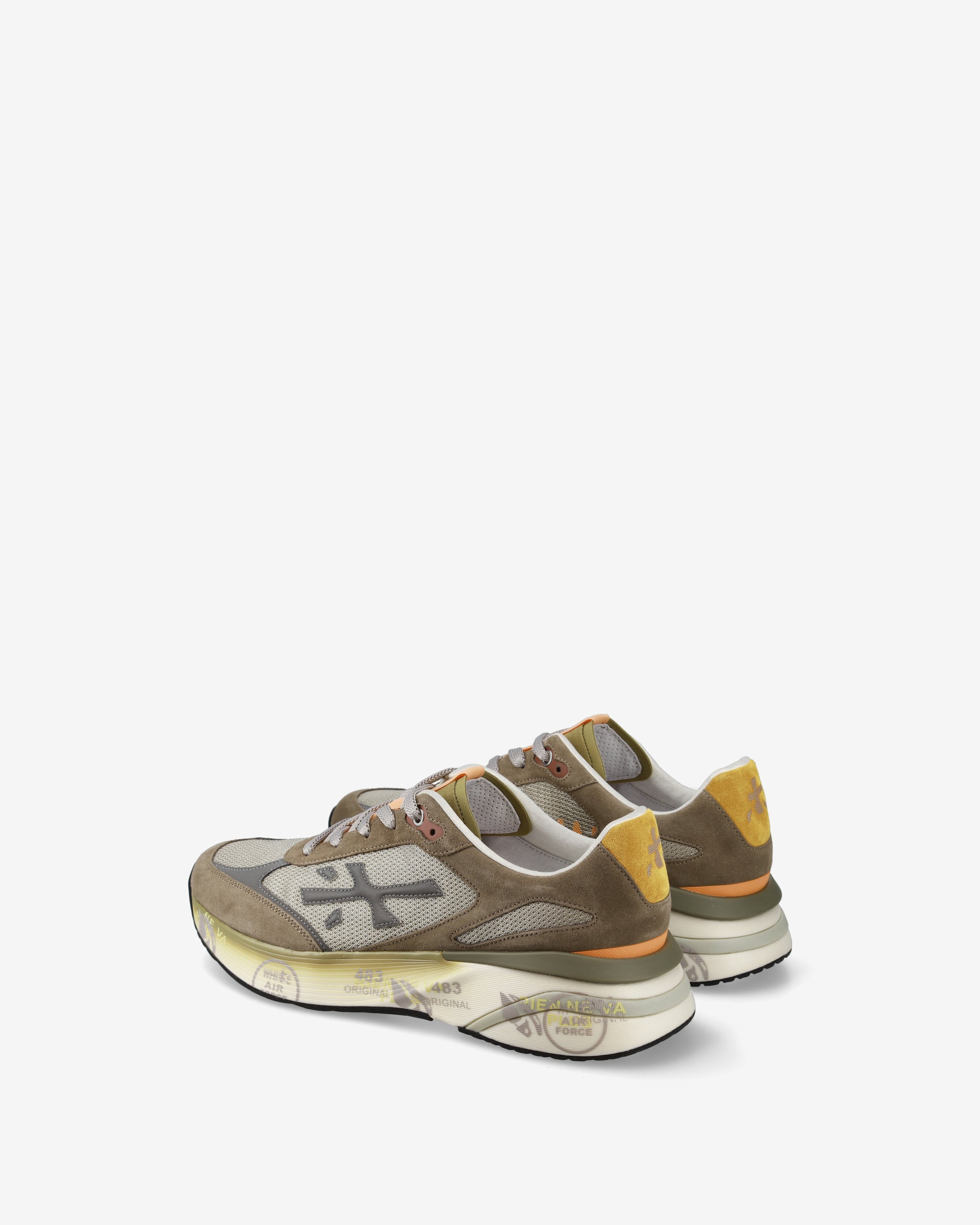Designed to impress. The Moerun is based on lightness of movement, stability, and the cushioning sensation provided by the innovative sole. The new silhouette is rich in details: logo on the outer side, PREMIATA lettering on the inner side, and model name on the label.
