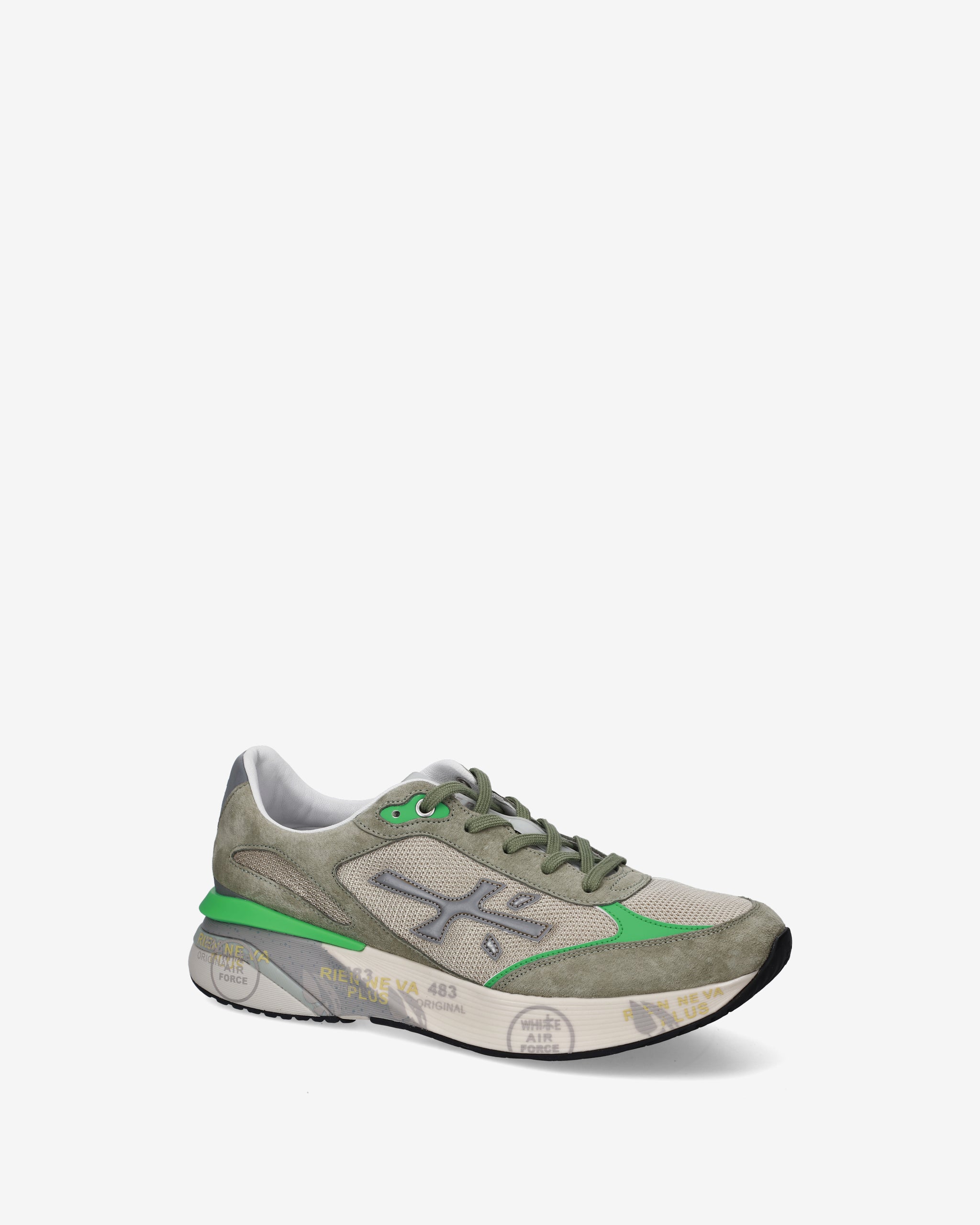 Designed to impress. The Moerun is built on fluid movement, stability, and the cushioned feel provided by its innovative outsole. The new silhouette is rich in details: a logo on the outer side, the word "PREMIATA" on the inner side, and the model name on the label.