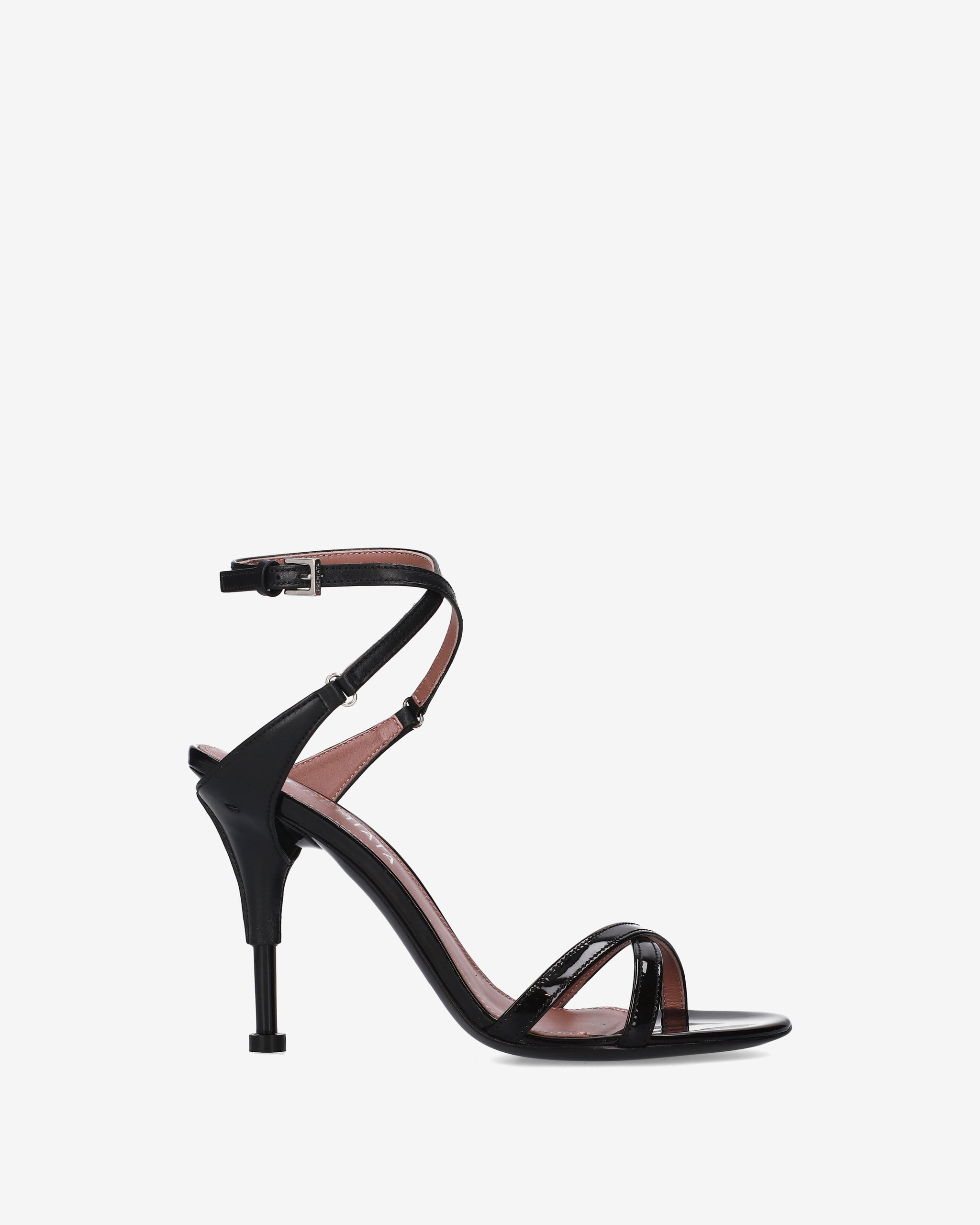 - Sculpted heel covered at the top and finished in technical black at the base, height 100 mm