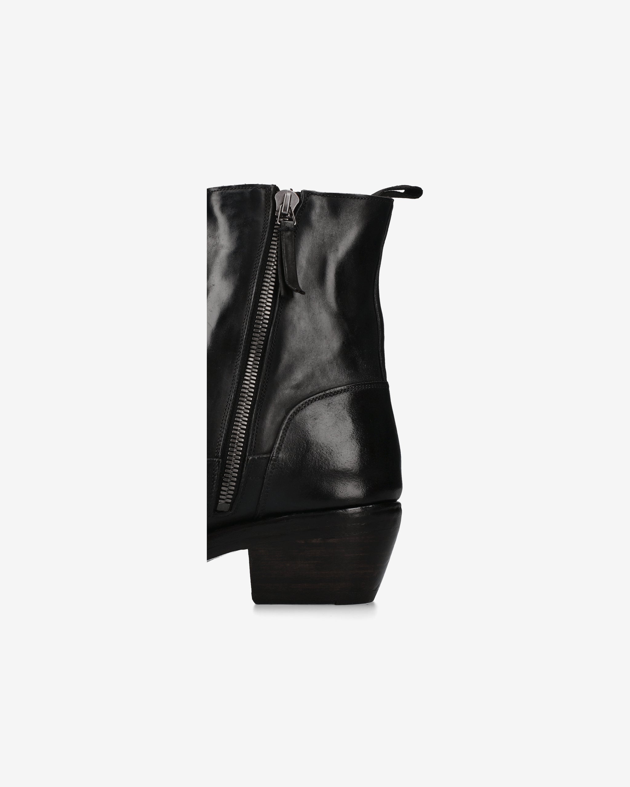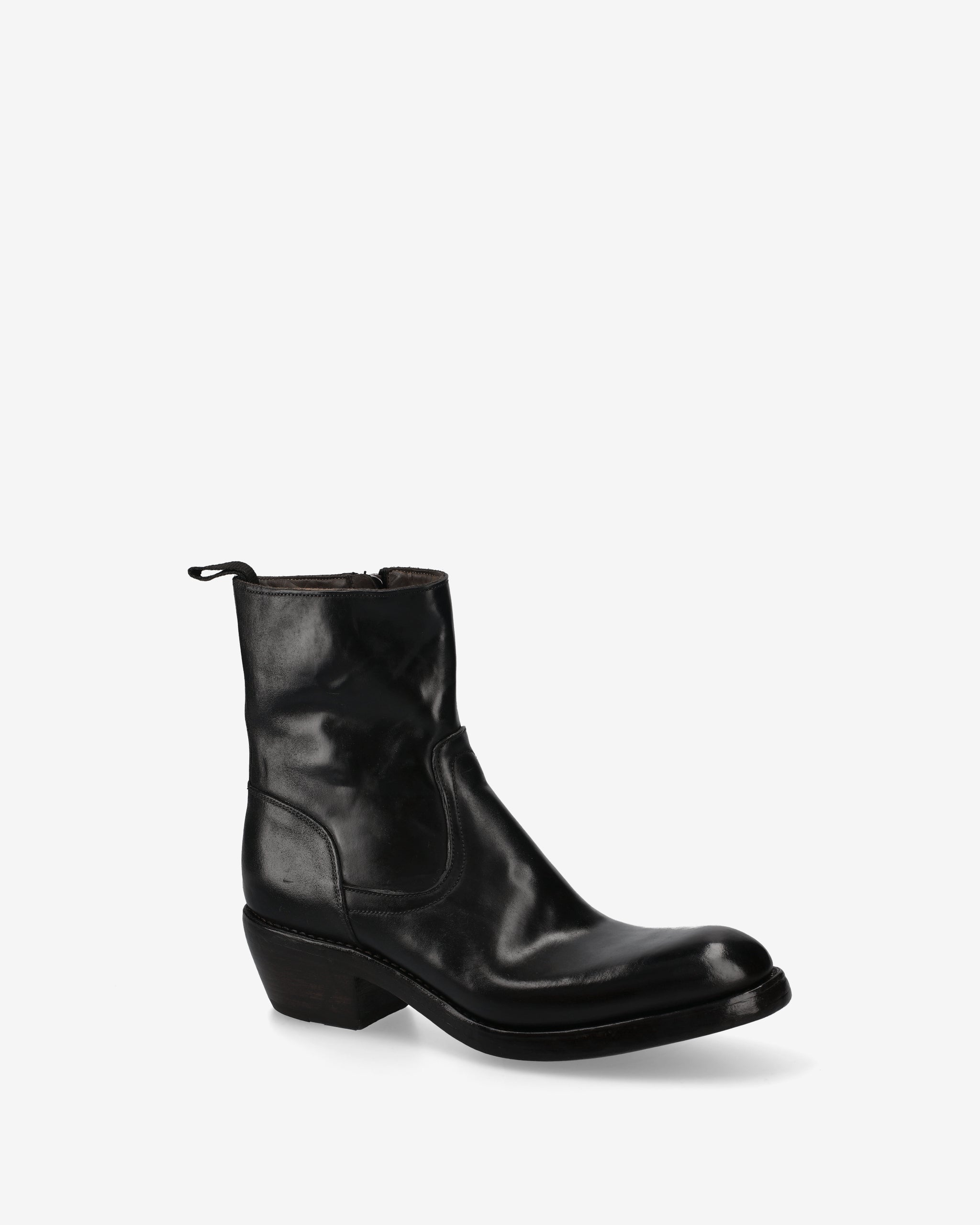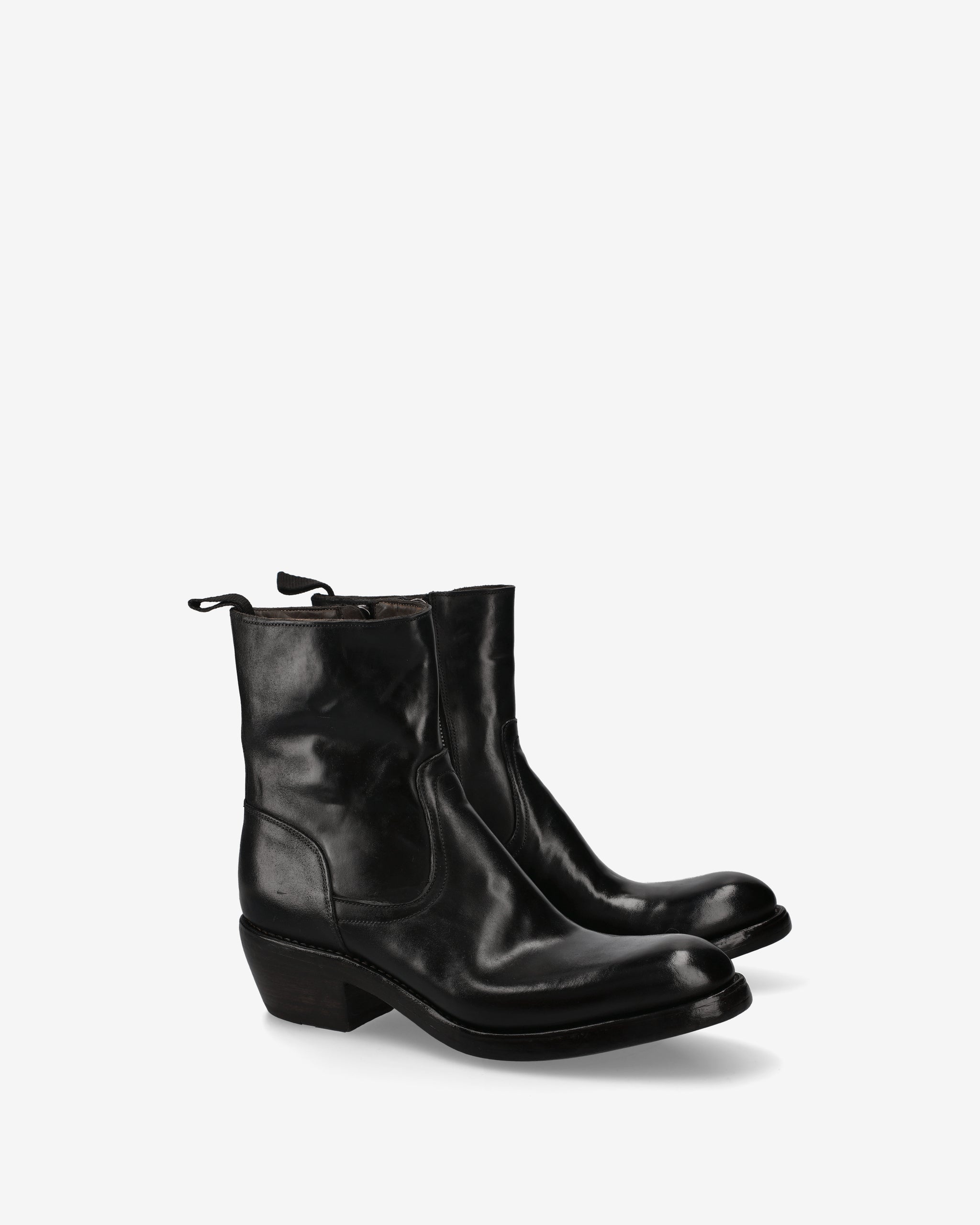 Rebellious elegance and masterful craftsmanship come together in this mid-calf boot. Featuring a bold silhouette and a slightly shiny finish, this model reworks the aesthetics of the classic Western-inspired boot in a contemporary and avant-garde key.
