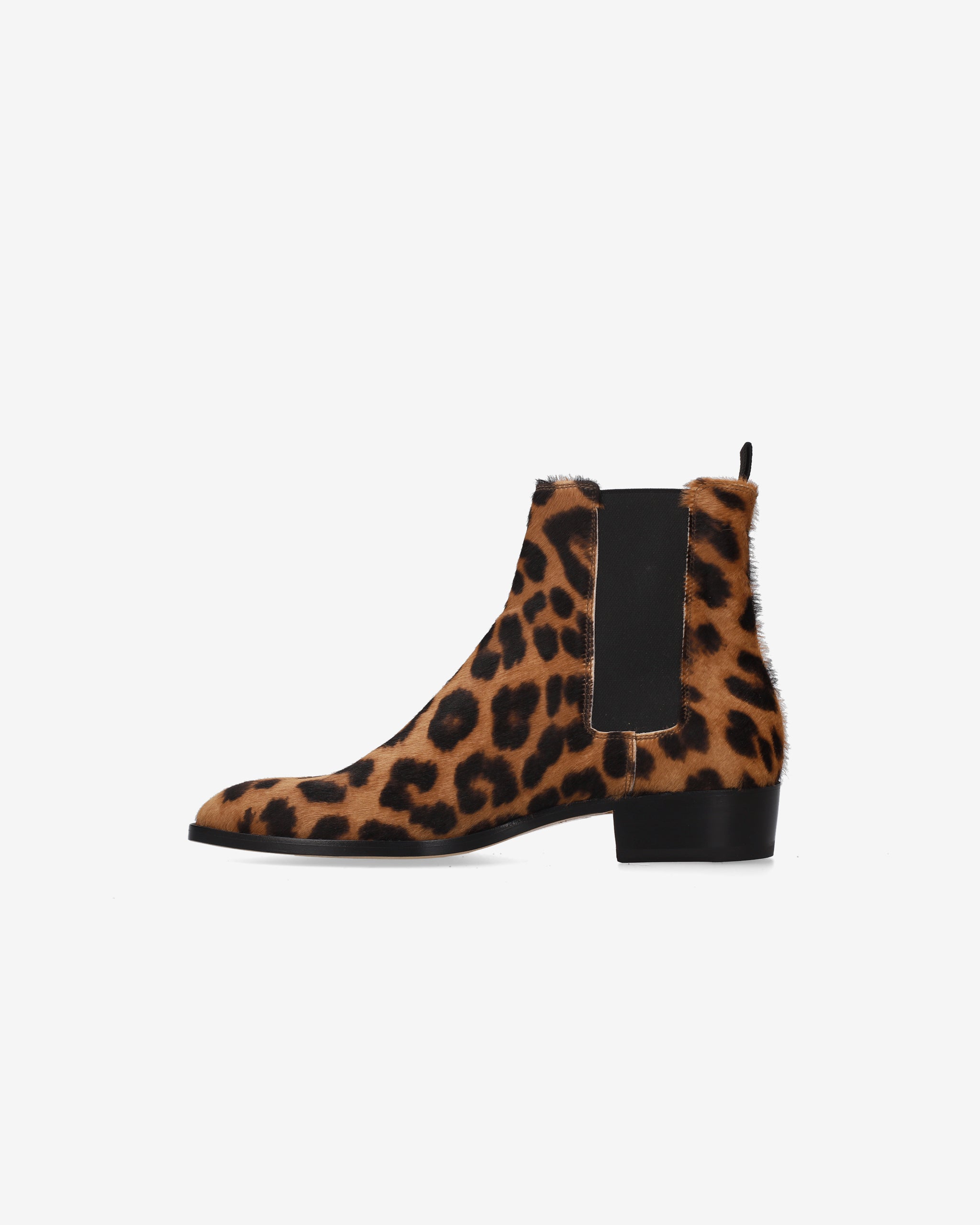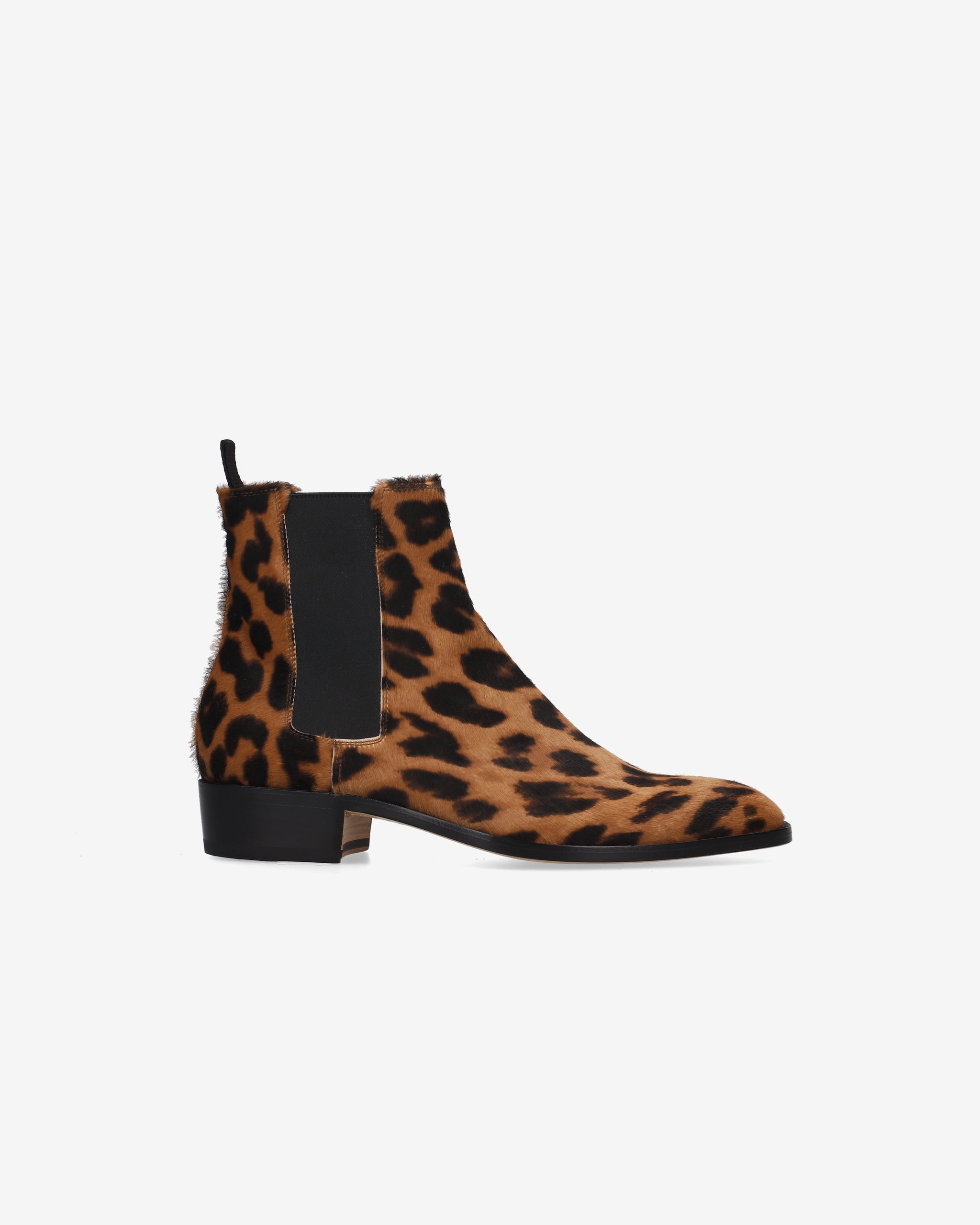 Bold, distinctive ankle boots crafted in spotted pony skin for a bold, contemporary look. The side elastic band ensures practicality and comfort, while the Blake workmanship and leather sole confirm excellent craftsmanship. The 30mm heel and 155mm shaft complete a sleek, characterful silhouette.
